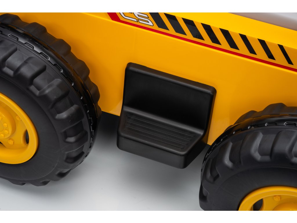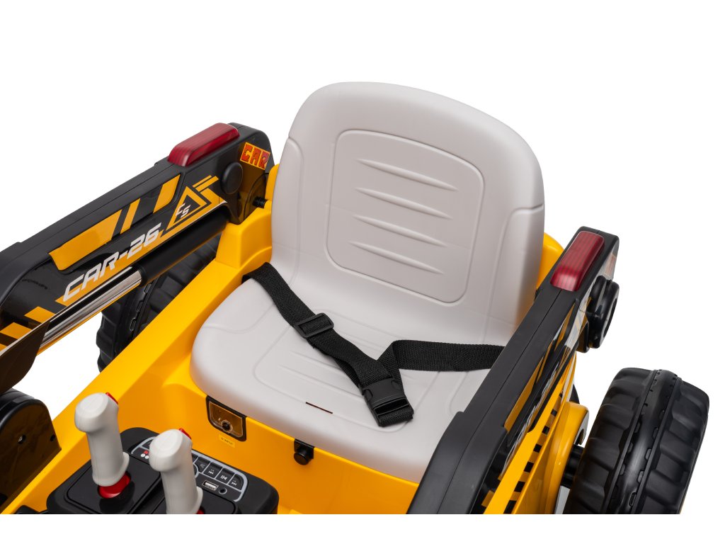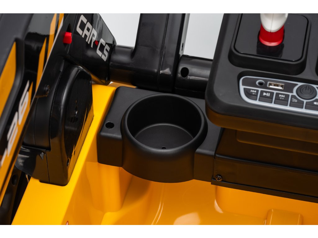 Pe lângă funcționalitatea impresionantă, încărcătorul pentru copii este echipat cu un player muzical cu funcție Bluetooth, intrare USB și cablu jack (AUX), astfel încât copiii să poată asculta melodiile preferate în timp ce se joacă. Pentru liniștea părinților, vehiculul este echipat cu mai multe elemente de siguranță, cum ar fi o centură în două puncte și bariere de protecție laterale, precum și o telecomandă care permite părinților să controleze încărcătorul și cupa de la distanță.
