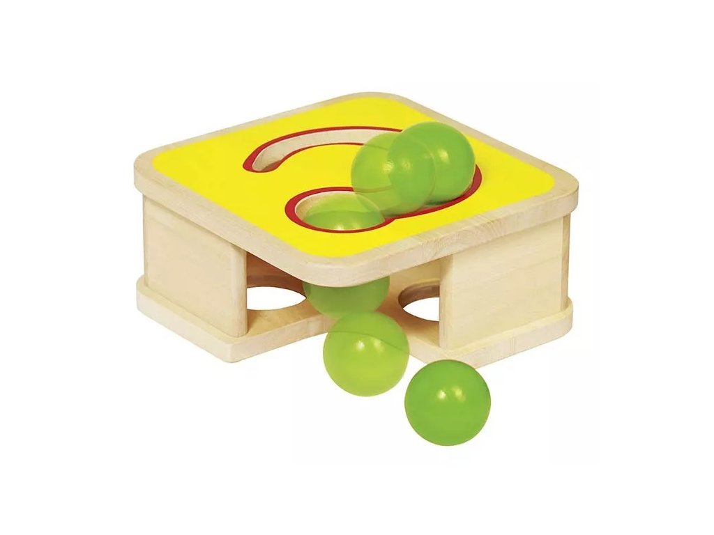 Design inovator al unui ciocănel clasic, care combină ciocănitul cu observarea bilelor pe circuit. Jucăria este destinată copiilor mici și mari și sprijină dezvoltarea motricității fine și a coordonării.
