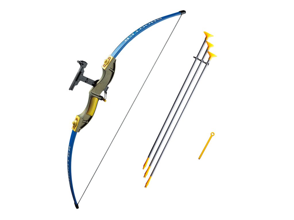 Trei săgeți, fiecare în culori gri-galben. Săgețile sunt proiectate având în vedere siguranța copiilor - sunt îndreptate cu o ventuză din cauciuc care permite tragerea în siguranță și minimizează riscul de rănire.