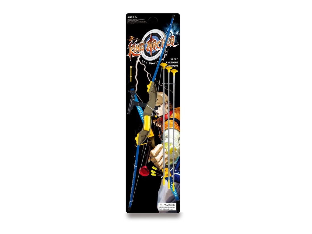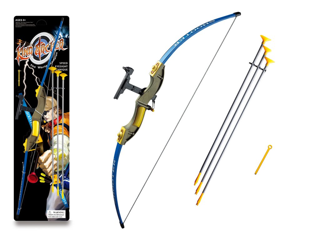 Arcul este de dimensiuni impresionante, măsurând până la 102 cm lungime. Este realizat in culori atractive – predominant albastru cu accesorii in galben si auriu, ceea ce o face o jucarie foarte eficienta.