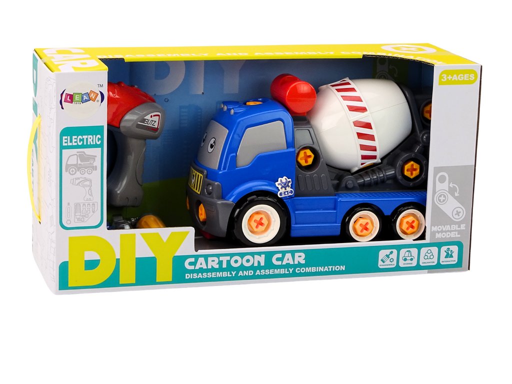 Asamblare camion betoniera cu motive de desene animate albastru DIY