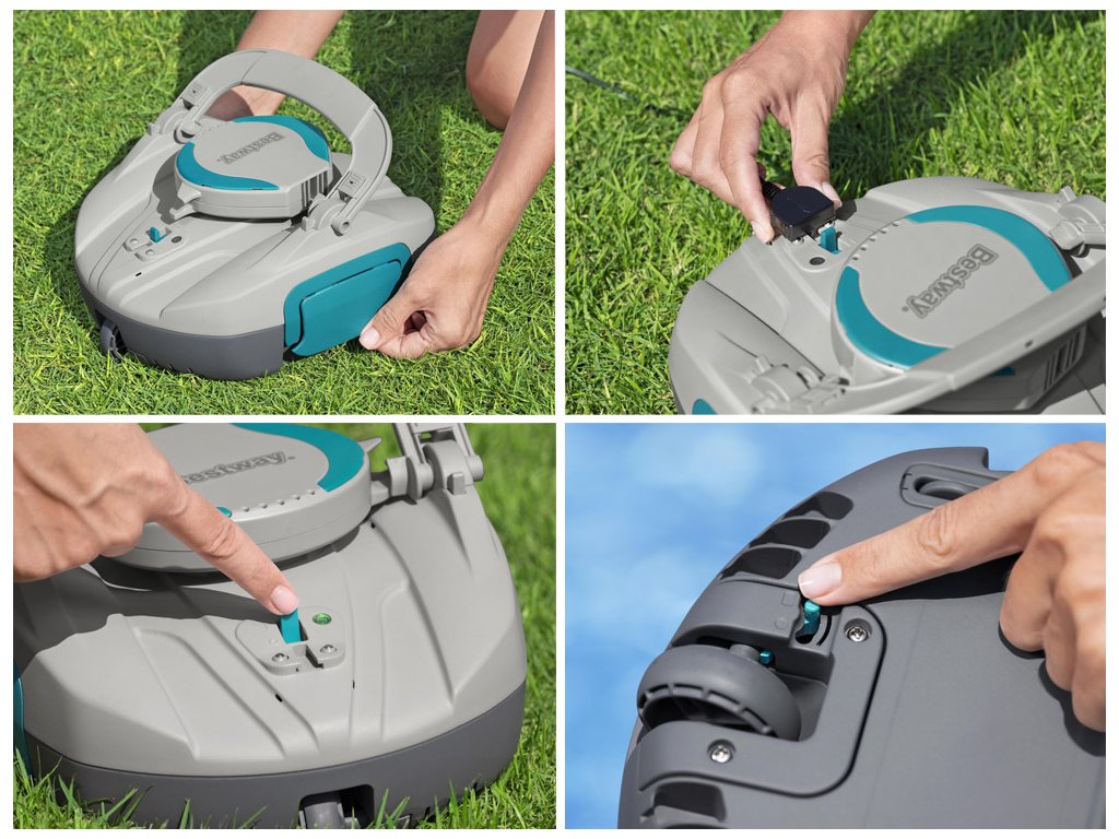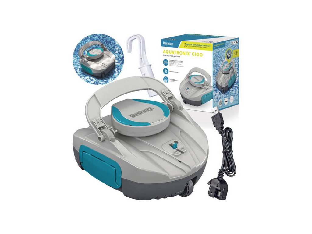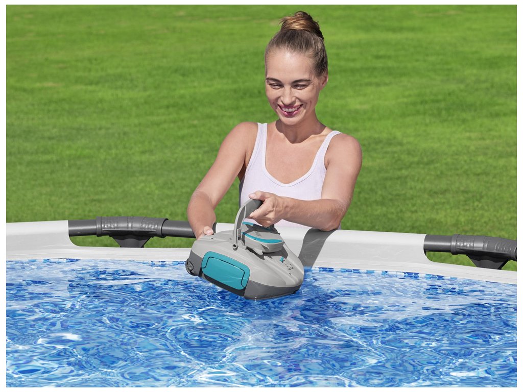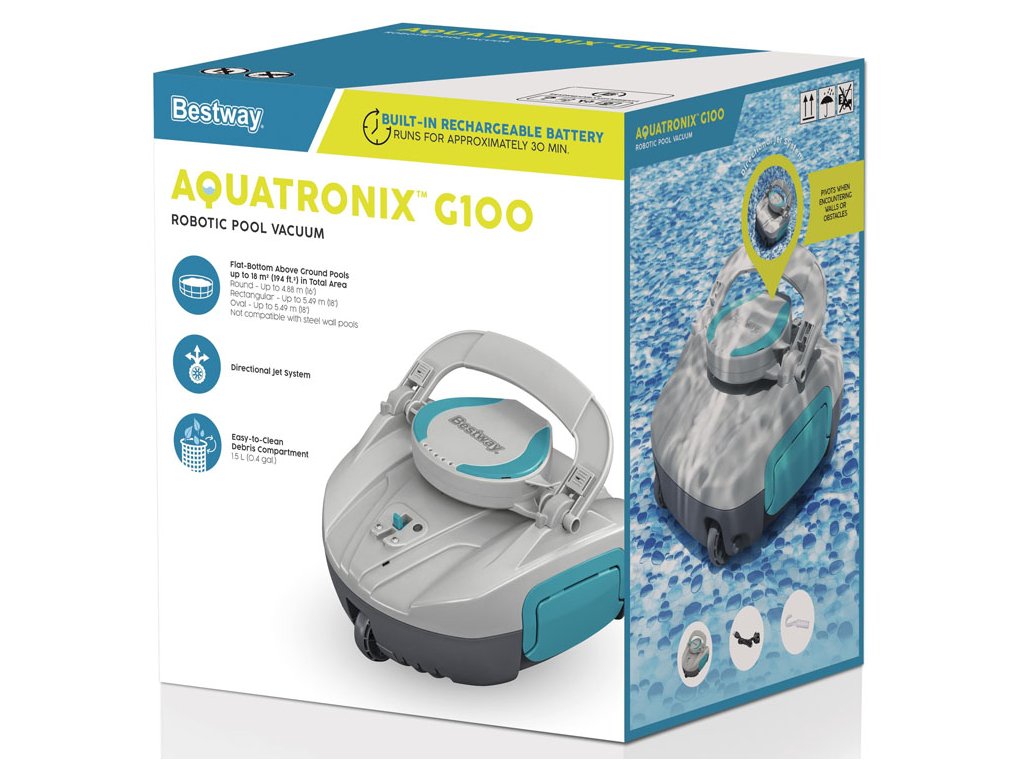 Aspiratorul de piscina AquaTronix G100 de la Bestway este o solutie automata moderna pentru curatarea piscinelor supraterane cu fund plat. Datorită designului wireless și bateriei încorporate, nu este nevoie să conectați cabluri sau furtunuri, ceea ce permite o manipulare ușoară și o întreținere eficientă a piscinei.