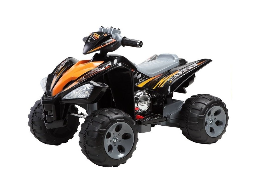 ATV electric pentru copii este destinat copiilor de la 3 ani. Are o funcție de frână automată care se activează imediat ce piciorul este ridicat de pe pedala de accelerație. ATV-ul oferă melodii preînregistrate și un claxon pe volan.