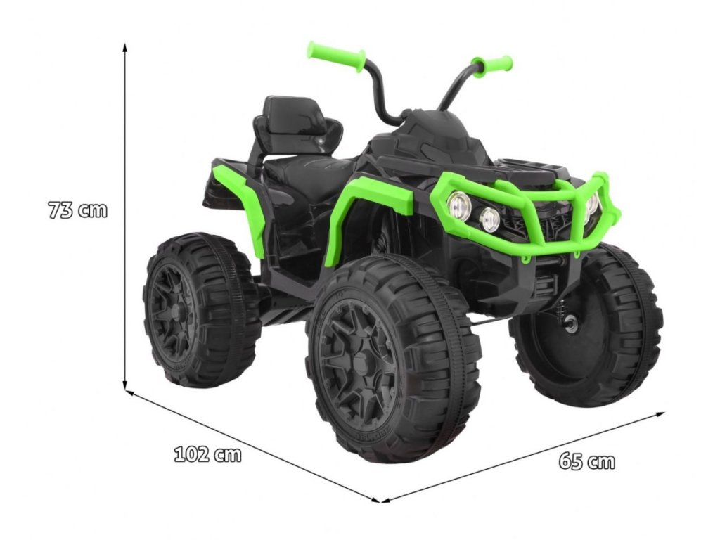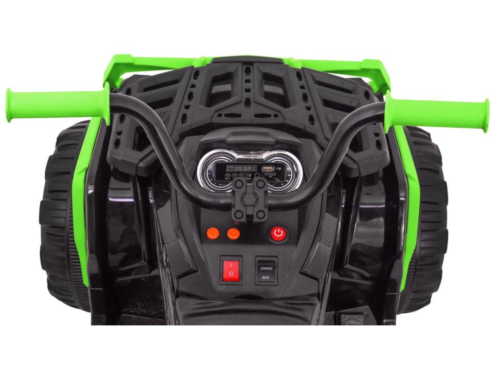 Quad-bicicletele electrice pentru copii este o modalitate excelentă de a introduce copiii în lumea autovehiculelor. Vehiculele electrice cu patru roți oferă o mulțime de distracție, fie în timpul plimbărilor în familie sau petrecând timpul în grădină. Datorită călăriei, copilul învață să conducă și își îmbunătățește abilitățile motorii. Quad-bike merge înainte și înapoi și are opțiunea de accelerare. Roțile sunt moale din EVA . Scaunul este foarte confortabil, are o formă ergonomică, astfel încât copilul va fi bucuros să se așeze din nou la volanul quad-ului. Quad-bike-ul are și iluminare LED. Quad-bike-ul este certificat de marca europeana de siguranta CE si este potrivit pentru copii incepand cu varsta de 3 ani.
