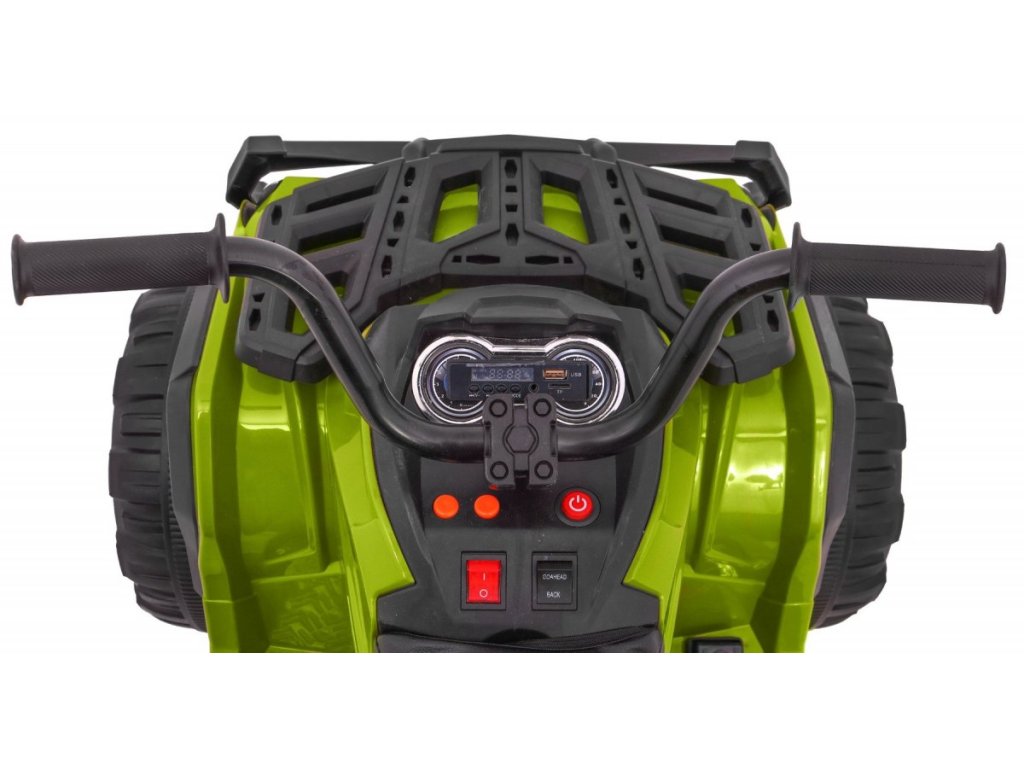 Quad-bicicletele electrice pentru copii este o modalitate excelentă de a introduce copiii în lumea autovehiculelor. Vehiculele electrice cu patru roți oferă o mulțime de distracție, fie în timpul plimbărilor în familie sau petrecând timpul în grădină. Datorită călăriei, copilul învață să conducă și își îmbunătățește abilitățile motorii. Quad-bike merge înainte și înapoi și are opțiunea de accelerare. Roțile sunt moale din EVA . Scaunul este foarte confortabil, are o formă ergonomică, astfel încât copilul va fi bucuros să se așeze din nou la volanul quad-ului. Quad-bike-ul are și iluminare LED. Quad-bike-ul este certificat de marca europeana de siguranta CE si este potrivit pentru copii incepand cu varsta de 3 ani.