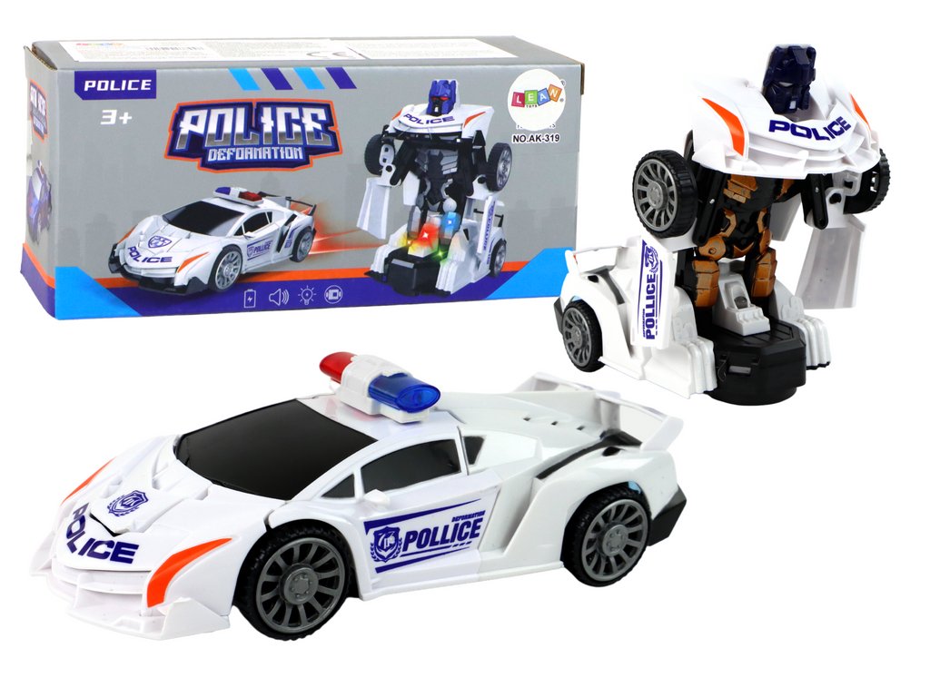 Auto-Robot Polițist alb 2 în 1 Transformare