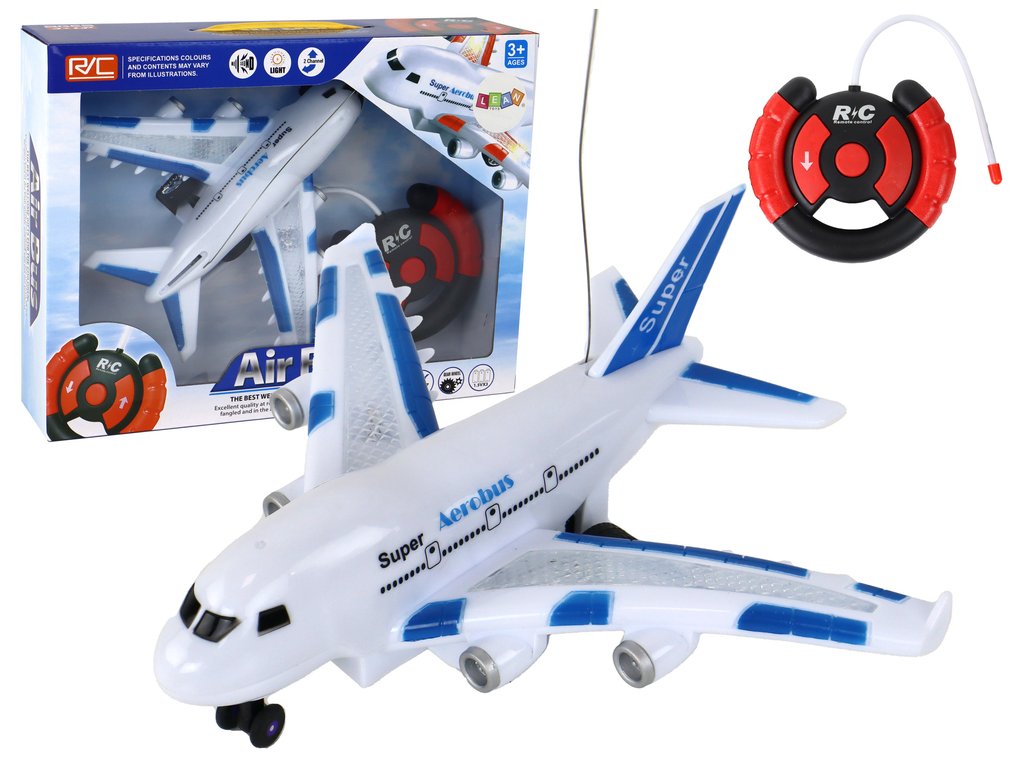 Modelul nostru R/C Aerobus este o aeronavă telecomandată care vă va impresiona prin designul său elegant. Aerobusul este echipat cu două roți mari, ceea ce îi permite să se deplaseze pe diferite tipuri de suprafețe. În plus, există o roată rotativă în față, care permite manevre precise spre stânga și dreapta. Pe aripi vei găsi lumini care strălucesc în timpul jocului. Jocul este însoțit de efecte sonore .