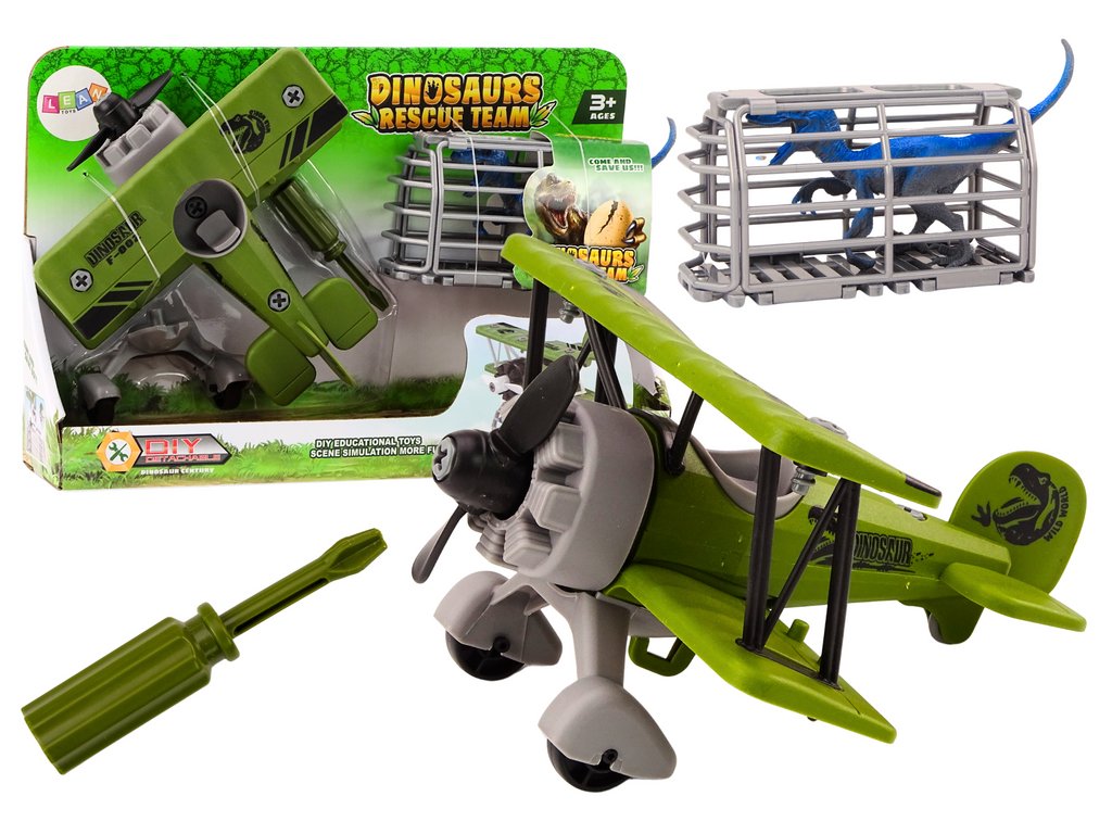 Avion de transport de dinozauri verzi detasabil cu cușcă