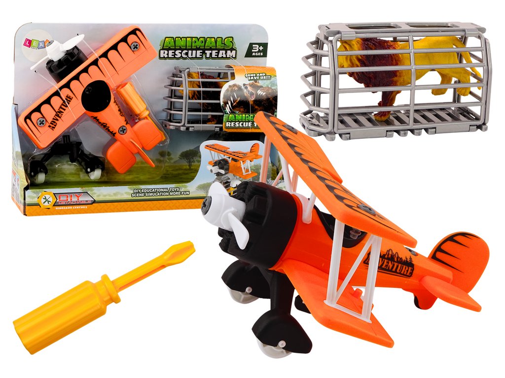 Avion portocaliu de transport animale cu cușcă pliabilă și leu