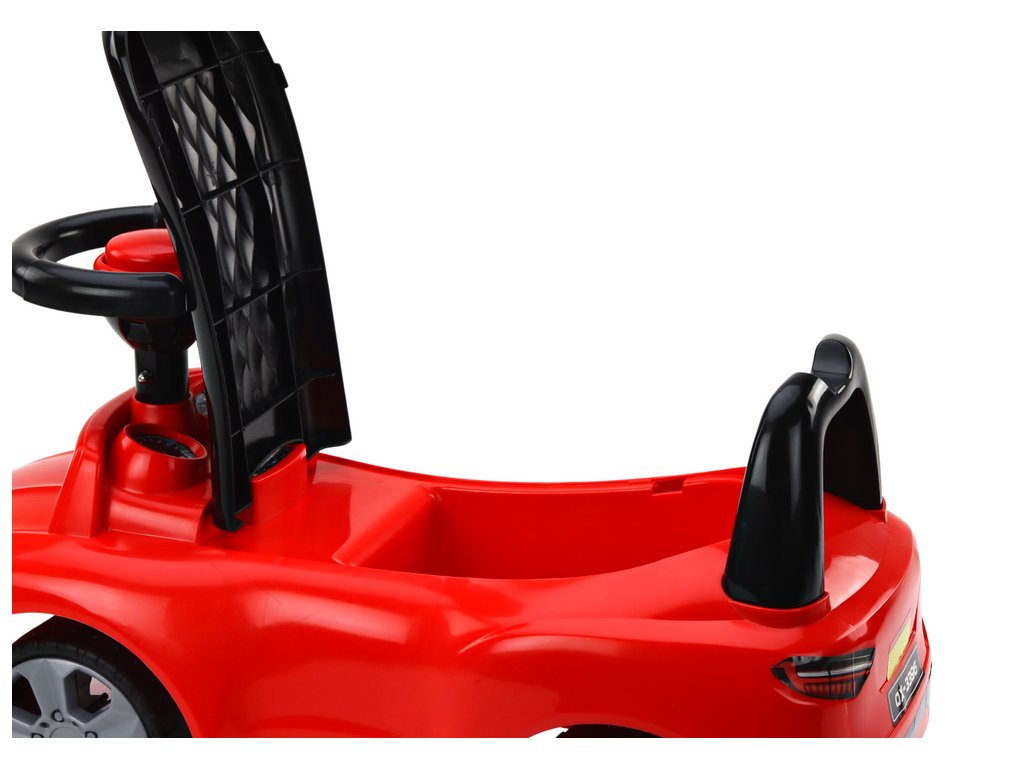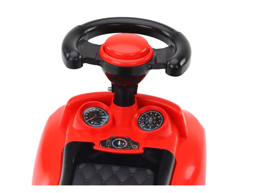 În mijlocul volanului se află un claxon care va avertiza că micul șofer este pe drum. Pe spatele mașinii există un suport care împiedică răsturnarea mașinii înapoi. Sub scaunul negru se afla o zona de depozitare in care copilul poate depozita diverse jucarii si le poate lua cu el in calatorie.