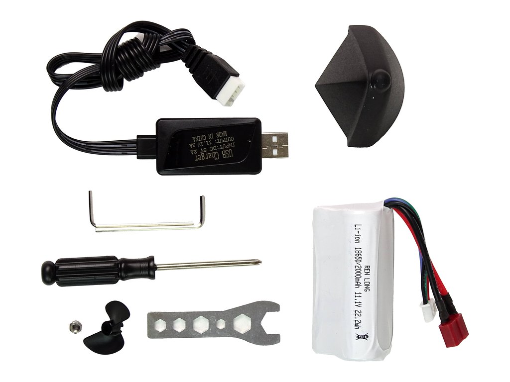 Barca cu motor are o construcție specială care împiedică pătrunderea apei înăuntru. Este agil, rapid și fiabil. Telecomanda este confortabilă, se potrivește perfect în mână. Transmite la o frecvență de 2,4 GHz, ceea ce nu provoacă interferențe la controlul a două vehicule.