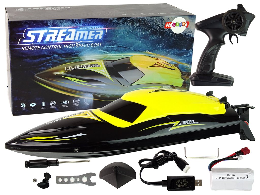 Barcă cu motor cu telecomandă Streamer R/C 2,4 GHz galbenă