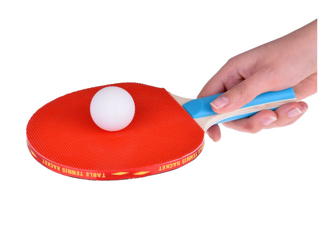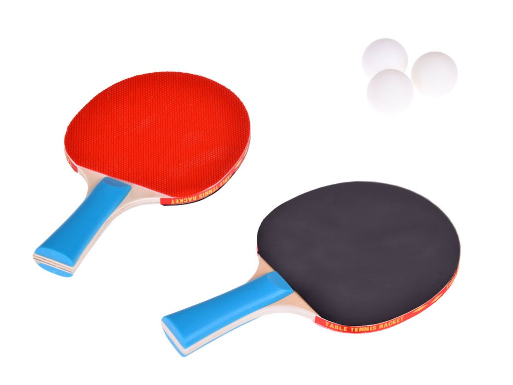 Pachetul contine trei bile usoare din plastic si doua lilieci de lemn. Forma lor ergonomică garantează o săritură confortabilă a mingiilor și, în același timp, împiedică alunecarea lor din mână.