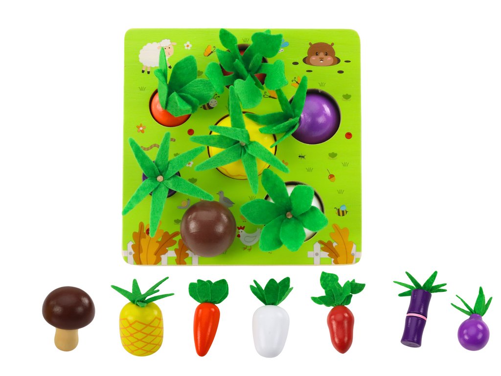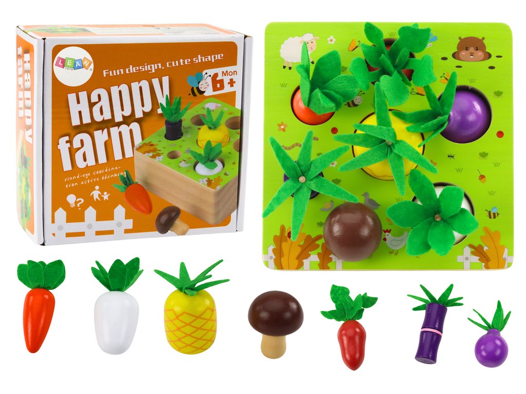 Elementul principal al acestui joc este o baza solida din lemn cu gauri rotunde in care asezam 12 piese dragute in forma de morcovi colorati. Sarcina jucătorilor este să găsească perechi de modele identice.