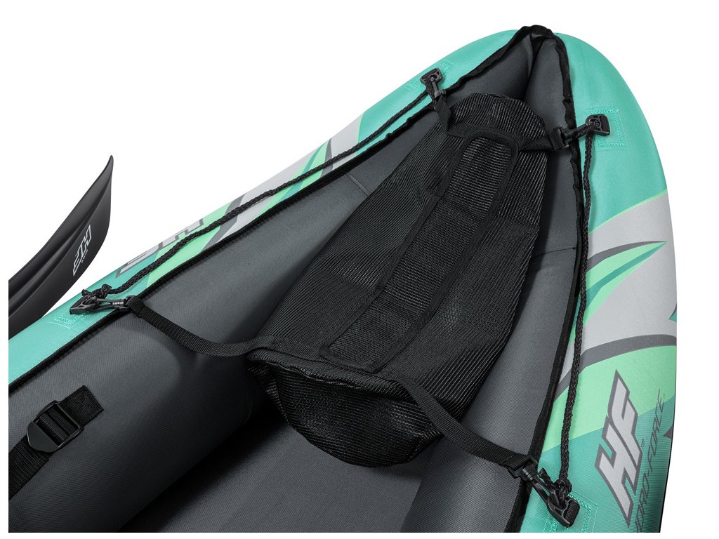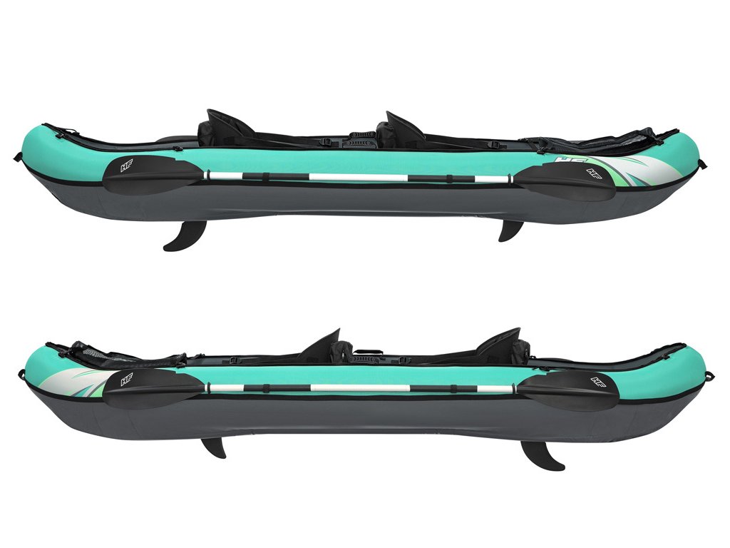 Caiacul are, de asemenea, o pompă cu piston, aripioare detașabile pentru stabilitate direcțională, o supapă de siguranță și supape de deșurubare pentru umflare/deumflare rapidă și are un design cu triplă cameră de aer. Utilizarea materialelor moderne de înaltă calitate în producție garantează o funcționare fără probleme, iar datorită mânerelor de transport integrate, este ușor de transportat.