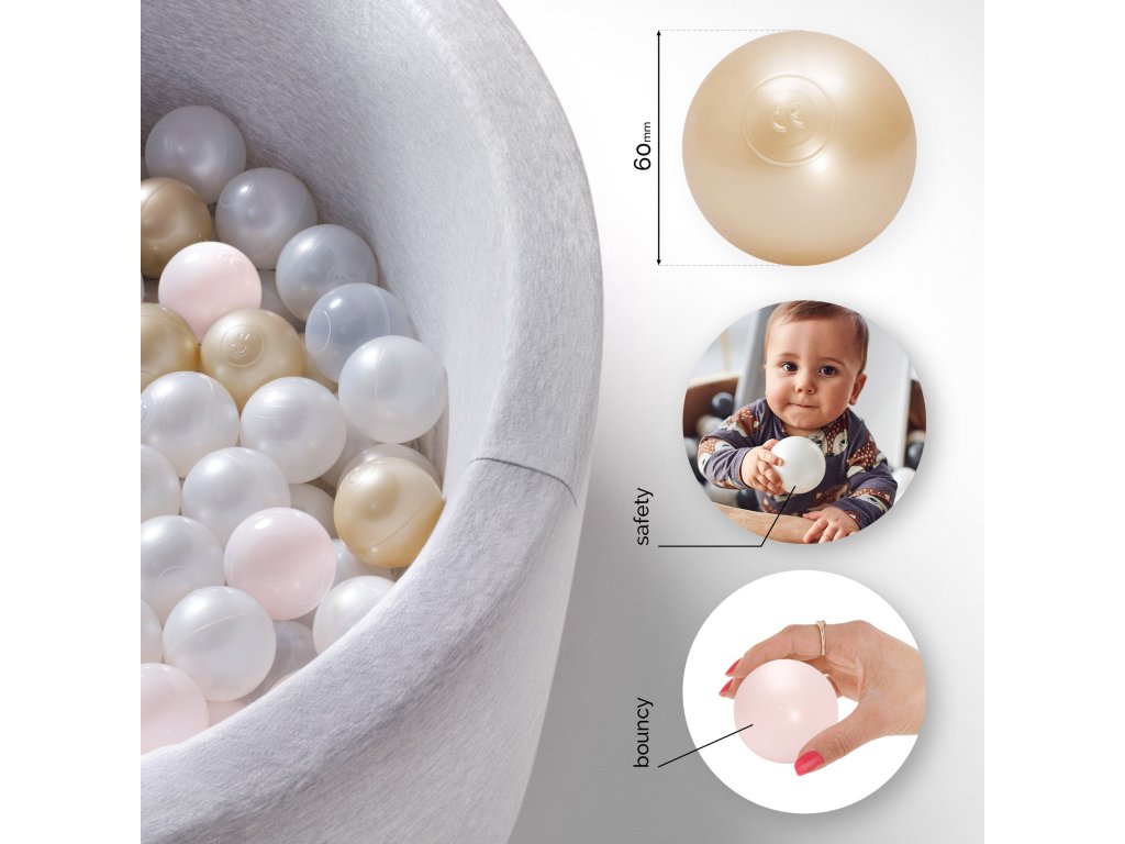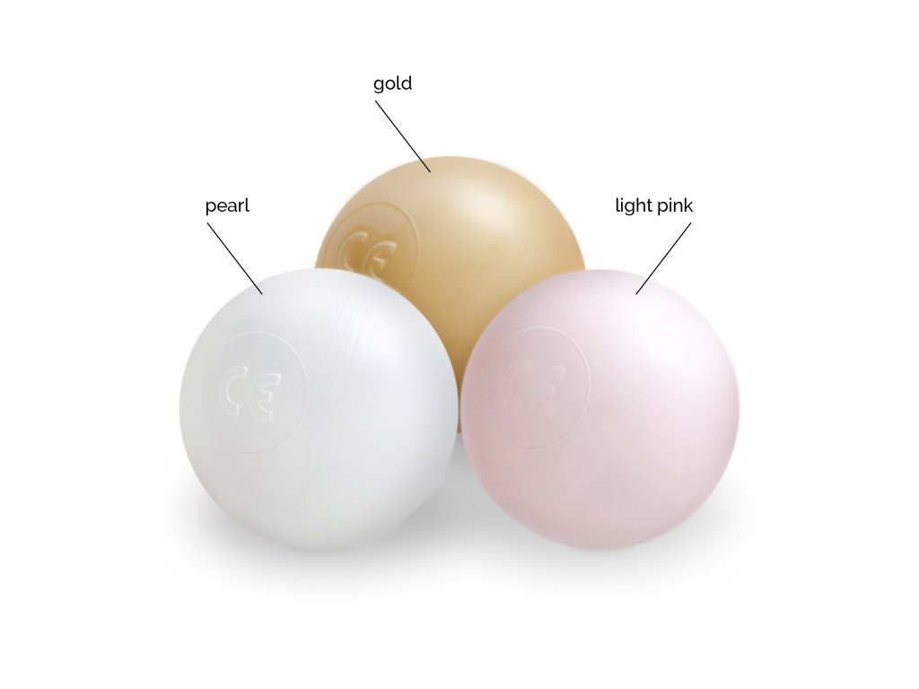 Bile pentru piscină uscată Ø 6 cm 200 buc. (perlate, aurii, perlate roz deschis)