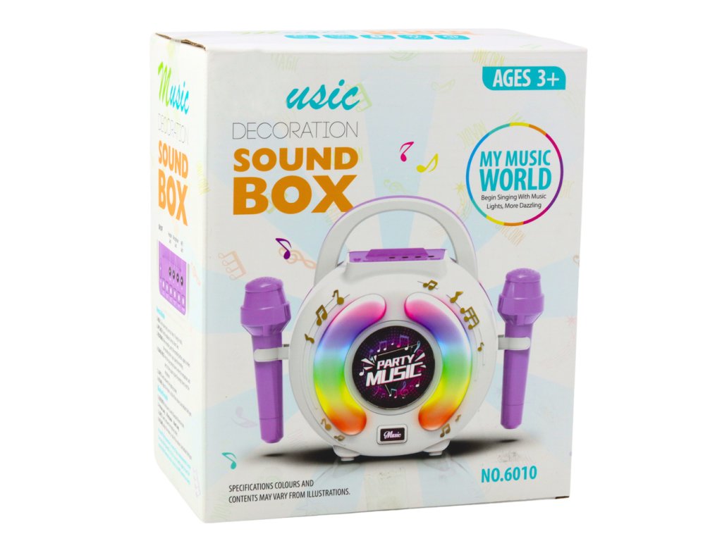 Sound Box-ul poate funcționa în două moduri - standard și Bluetooth - ceea ce permite conectarea convenabilă a surselor audio externe. Copiii se pot bucura de melodiile încorporate sau pot cânta melodiile lor preferate de pe telefon sau player MP3. Două microfoane incluse permit interpretarea în colaborare, iar mânerele și o curea fac setul confortabil de transportat.