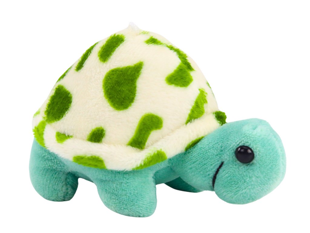 Vă prezentăm o drăguță broască țestoasă de pluș cu dimensiunea de 10 cm, care fermecă prin aspectul său neobișnuit în culorile albastru și alb-verde.