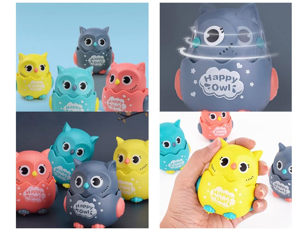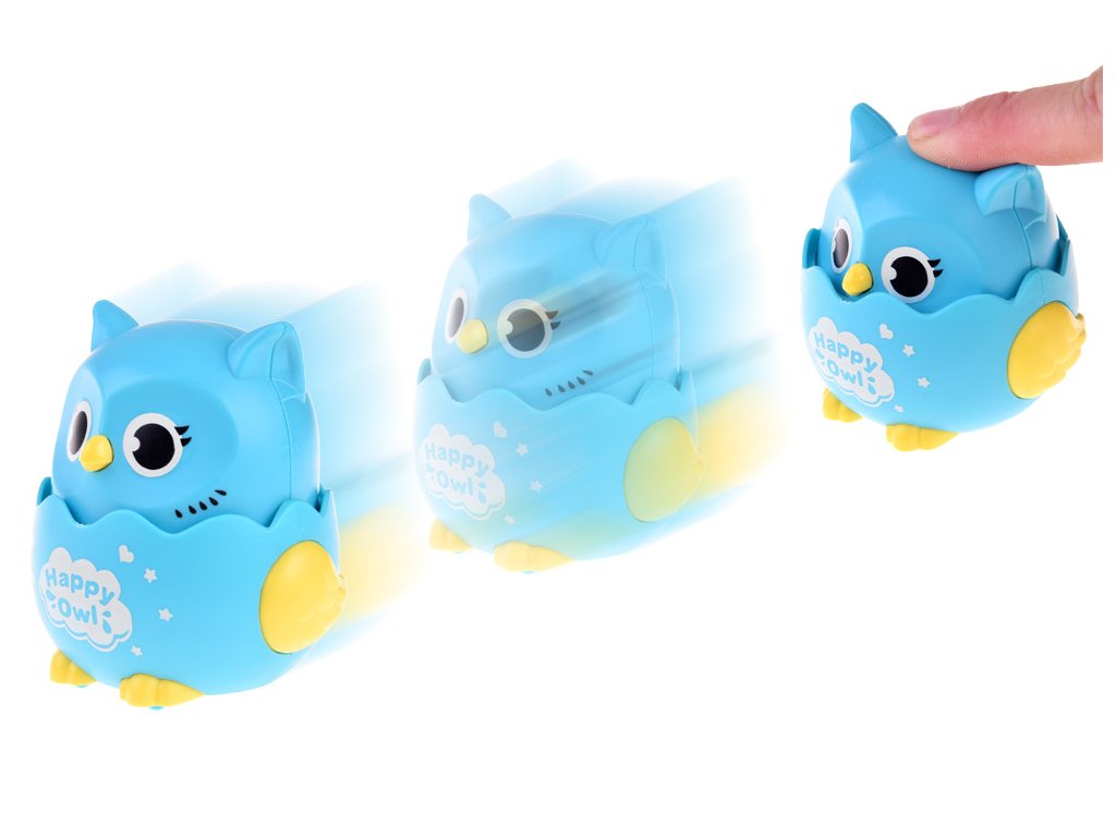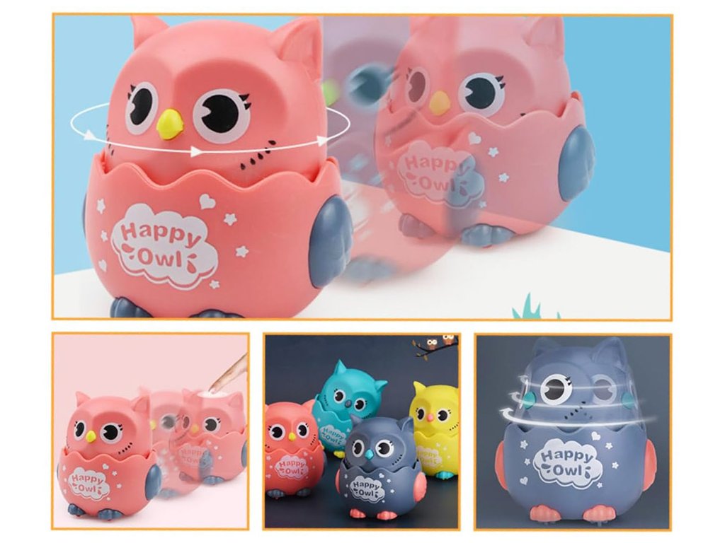 Bufnița colorată și drăguță va trezi cu siguranță interesul multor copii mici. Bufnița este realizată în întregime din plastic, are ochi mari și negri și un cioc mic. Bufnița se mișcă folosind roți mici situate pe partea inferioară a păsării. Doar așezați-l pe o suprafață plană, împingeți capul înăuntru și jucăria se va mișca rapid înainte. Bufnița este grozavă și ca gadget antistres. Mișcă capul păsării pentru a auzi ciripitul.