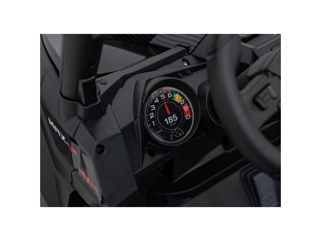 Puteți controla mașina de jucărie folosind o telecomandă care funcționează pe o frecvență de 2,4 GHz . Telecomanda are trei viteze și un buton de siguranță STOP , care oprește imediat mașina de jucărie atunci când este apăsată. Scaunul este acoperit cu piele ecologica si are centuri de siguranta .