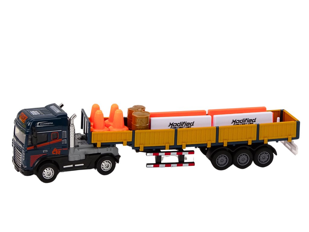 Modelul include opt conuri de trafic care pot fi folosite pentru a crea scenarii pe un șantier sau în alte situații. Setul include și patru bariere de trafic în portocaliu și alb, ceea ce mărește posibilitățile de a juca și de a învăța regulile de siguranță rutieră. Camionul are o unitate care permite modelului să se deplaseze independent.