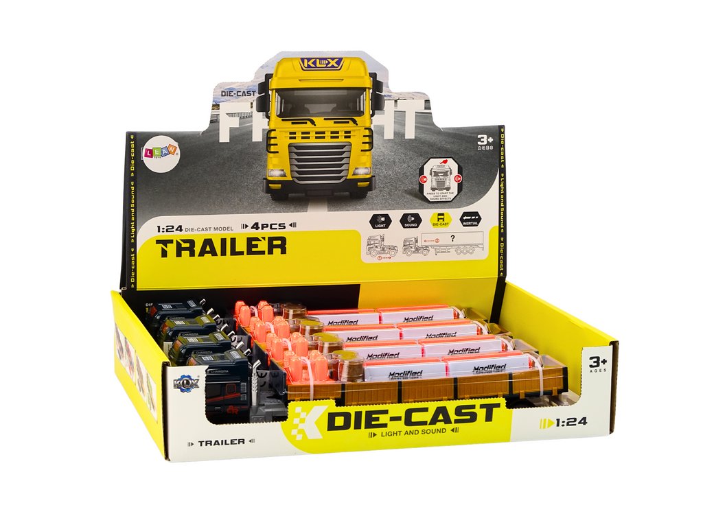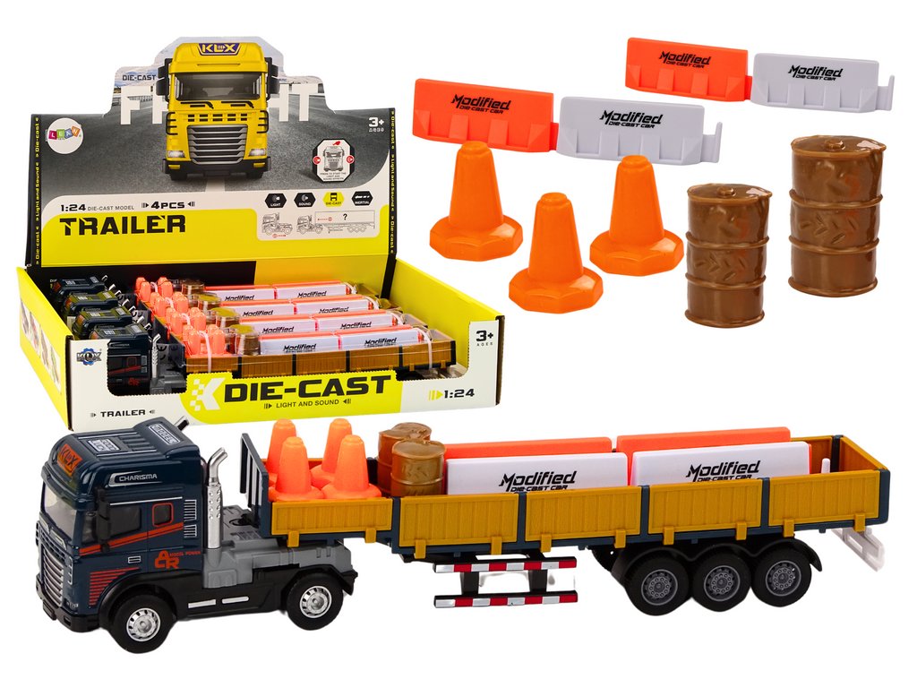 Camionul cu remorcă la scară 1:24 este o jucărie versatilă care combină realismul cu funcționalitatea. Datorită numeroaselor accesorii, deschiderii ușilor laterale ale remorcii și efectelor sonore, copiii își pot dezvolta imaginația în timp ce învață regulile de siguranță rutieră.