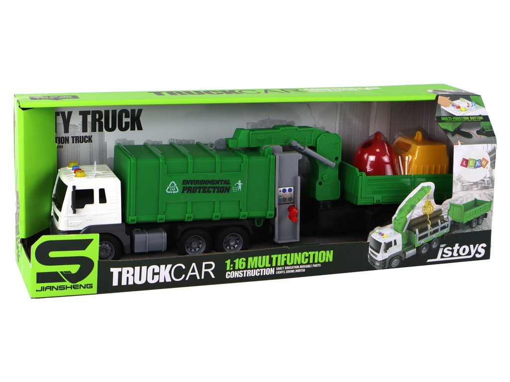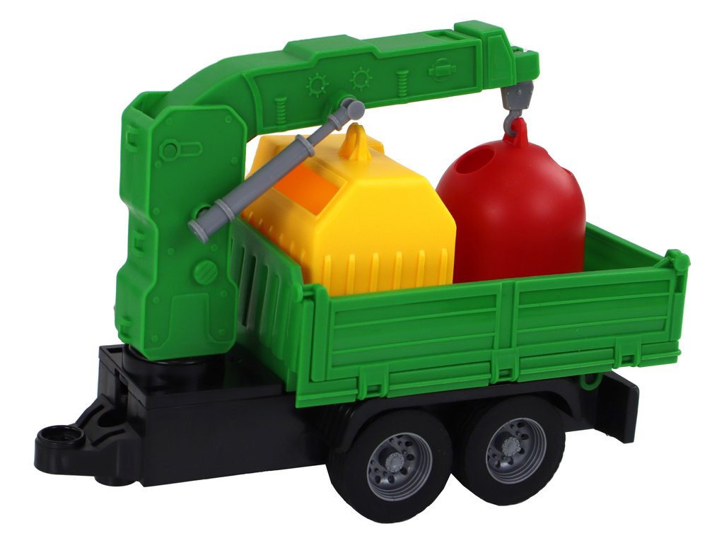 O altă atracție este o remorcă cu macara. Brațul macaralei se ridică, adăugând un element interactiv și creativ jocului. Copilul poate ridica și coborî containerele, poate juca scene de colectare și sortare a deșeurilor.