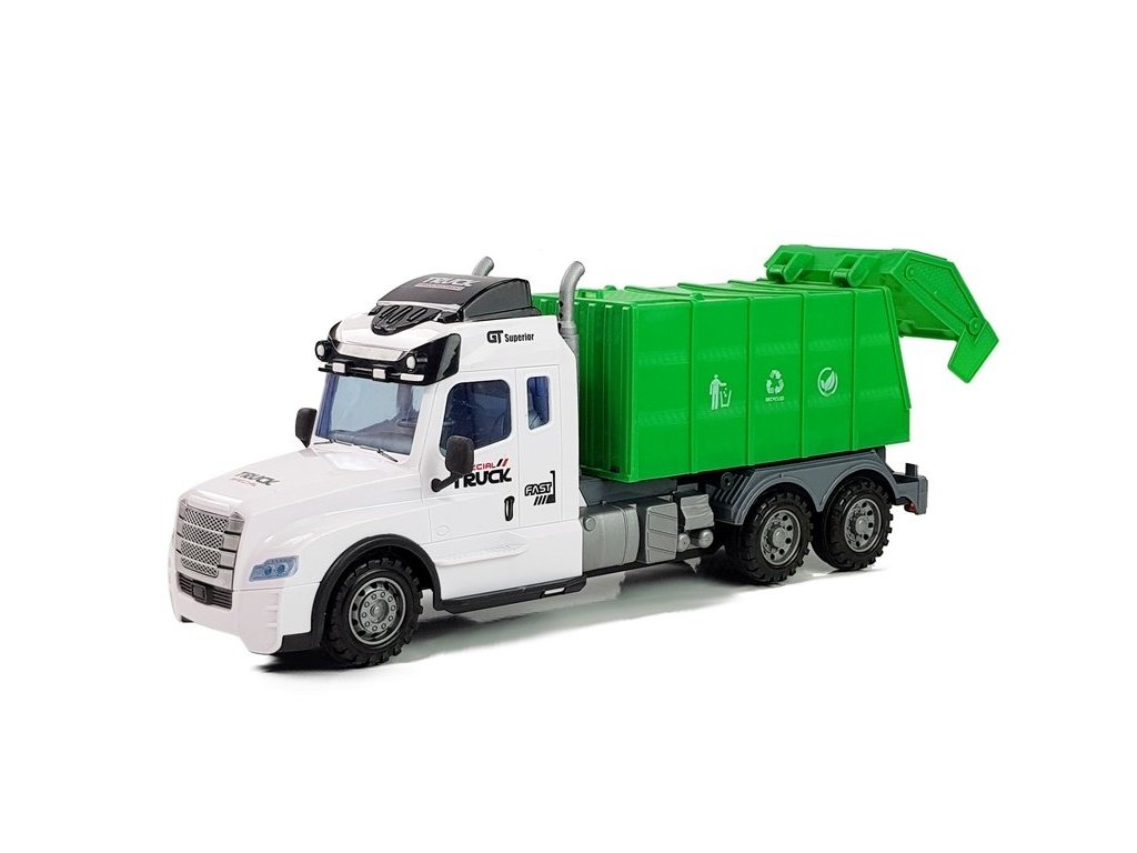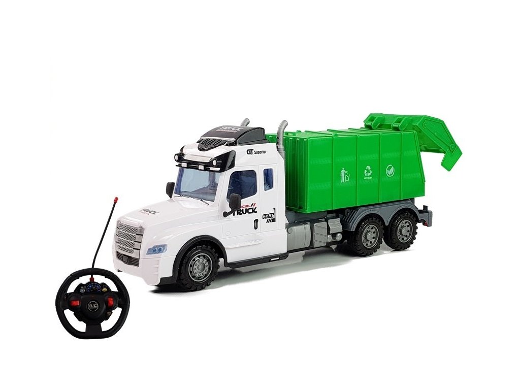 Camionul de gunoi cu telecomandă combină distracția și siguranța, făcându-l jucăria perfectă pentru micii constructori. Prelucrarea precisă a detaliilor, roțile mobile și clapeta din spate a containerului asigură o experiență de joc autentică.