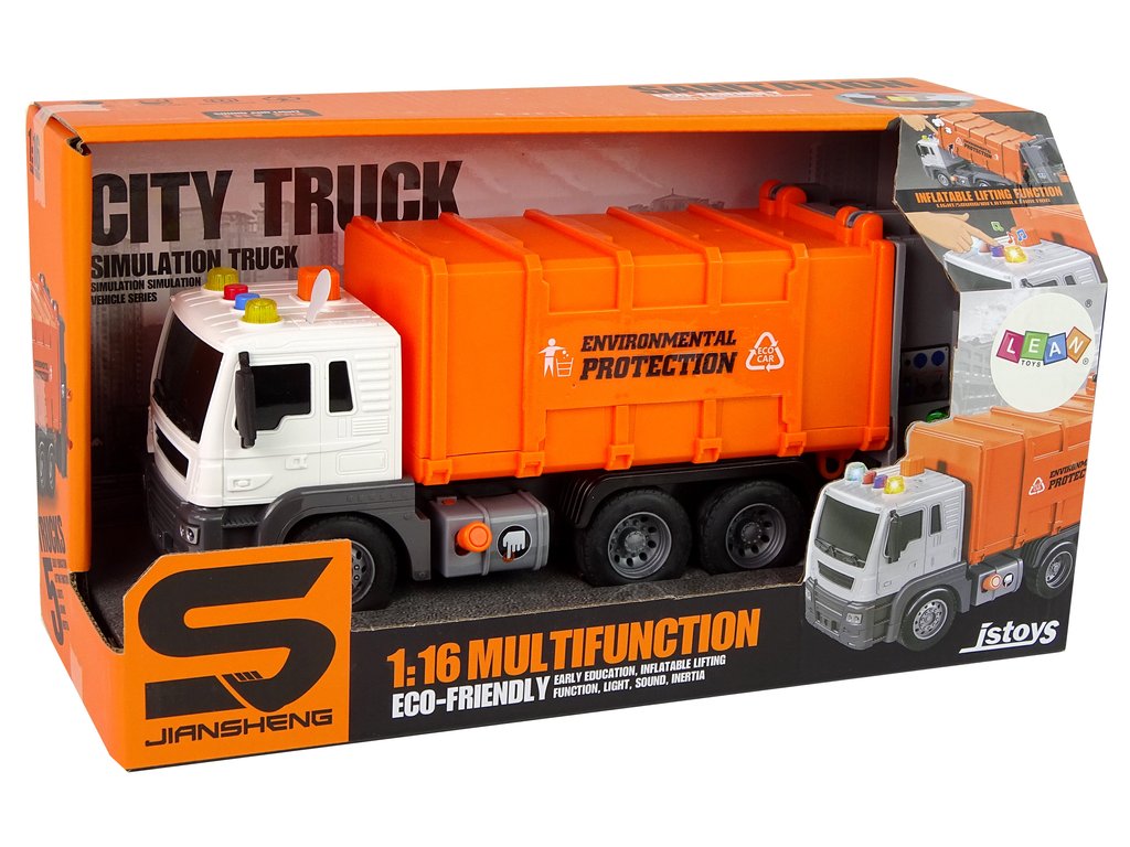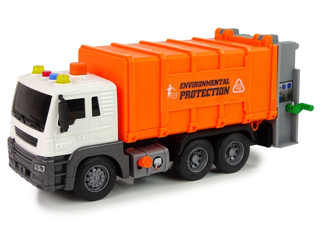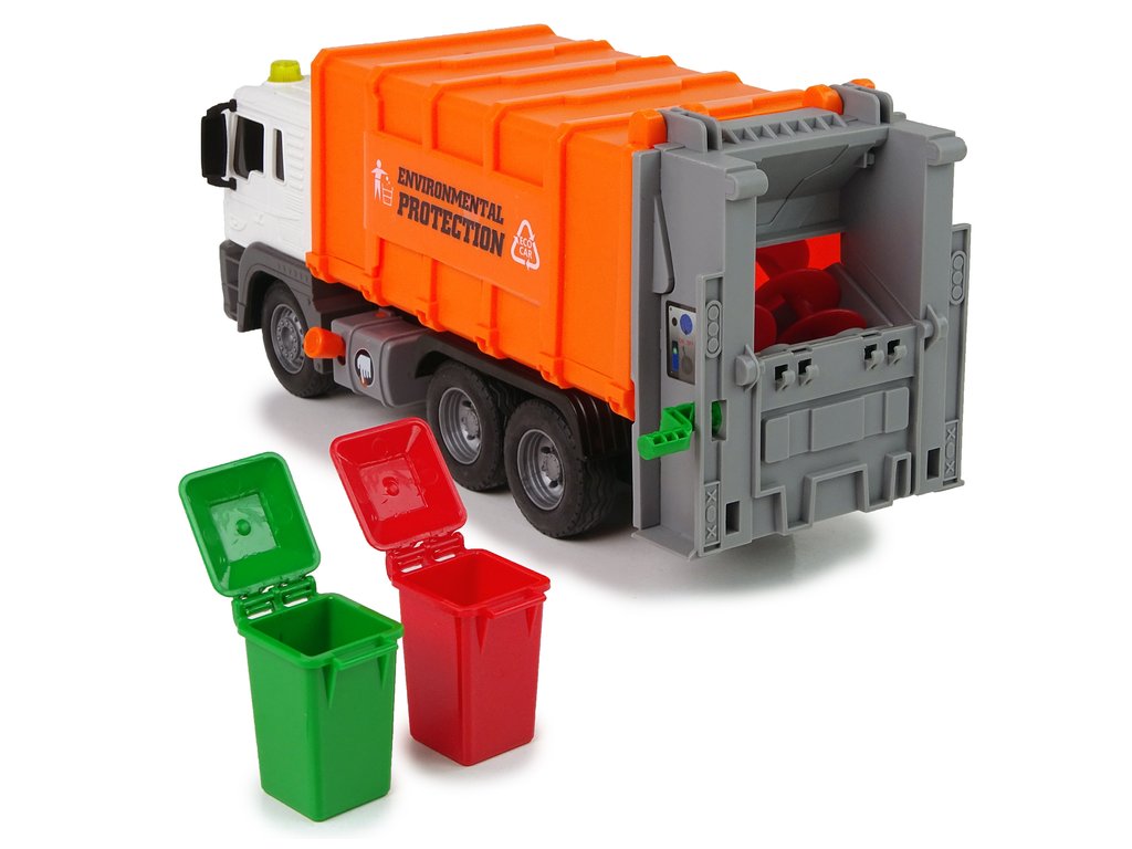 Camionul de gunoi pentru copii este o jucărie grozavă pentru toți băieții cărora le place să se joace cu mașinile. Desigur, camionul de gunoi include și 2 pubele de sortare . Vehiculul se deplasează dinamic în toate direcțiile posibile și este echipat cu tracțiune spate. Versiunea în miniatură încântă și cu efecte sonore care încurajează jocul și stimulează imaginația.