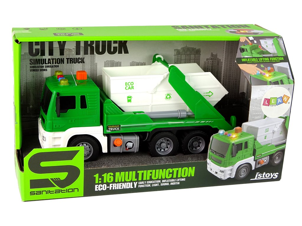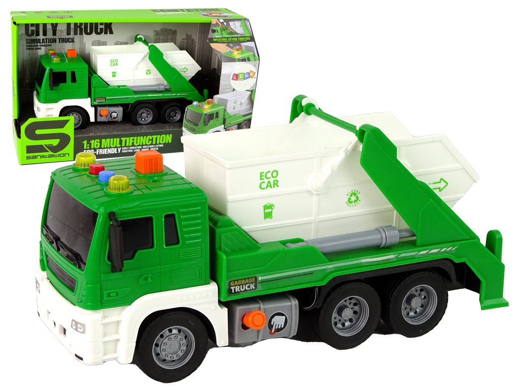 Un camion de gunoi este un vehicul pe care un copil mic îl vede uneori pe drumuri și îi trezește interesul. Acum, copilul poate avea propriul său camion de gunoi acasă și își poate sorta micile deșeuri. Jocul va avea o valoare educativă, copilul dumneavoastră va învăța despre construcția și funcționarea camionului de gunoi și va învăța cum să sorteze deșeurile . Versiunea în miniatură încântă și cu efecte sonore care susțin jocul și stimulează imaginația.