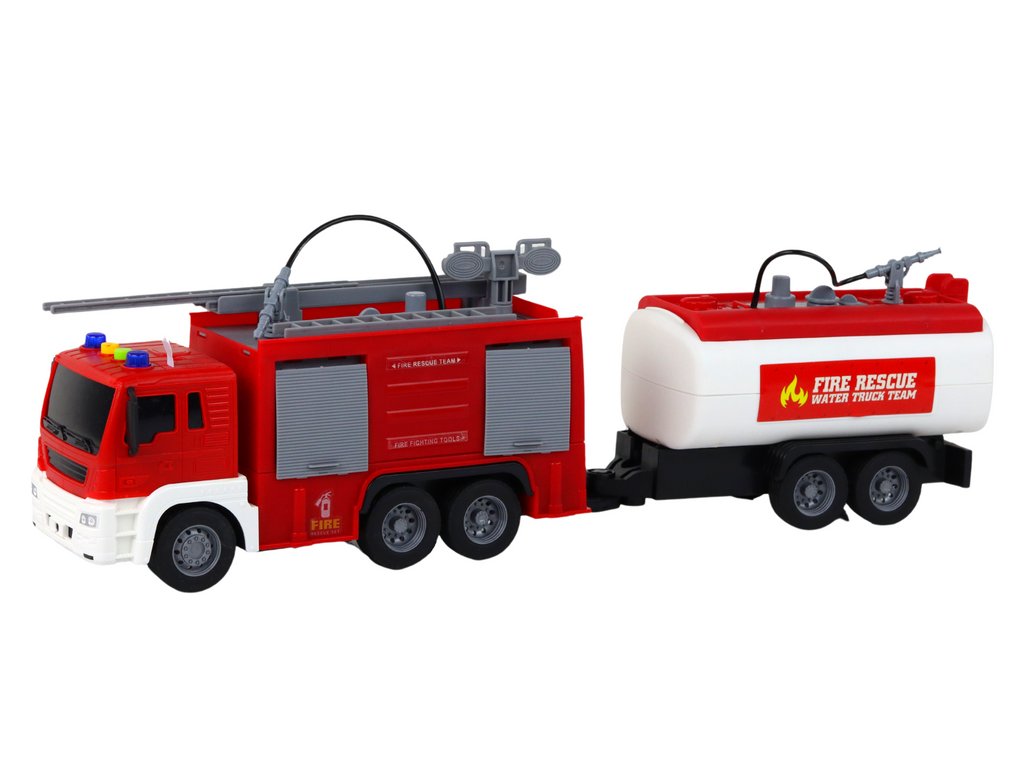 Camion de pompieri cu remorcă 1:16 roșu
