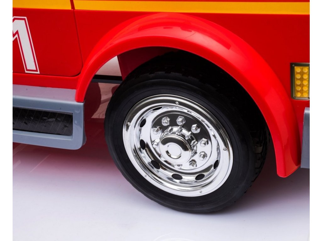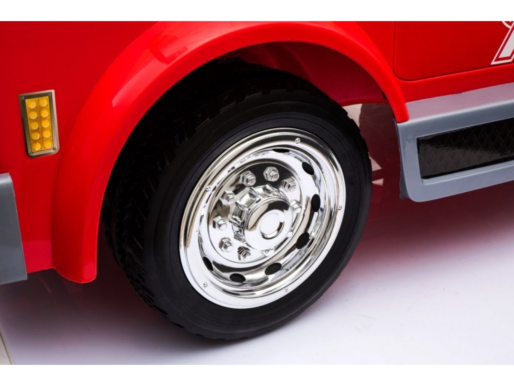 O mașină electrică pentru copii în stilul unei mașini de pompieri clasice va încânta toți micii fani ai acestei profesii. Pe lângă un design frumos, mașina de jucărie oferă și multe funcții și echipamente bogate. Roțile din spumă EVA sunt silențioase și se ocupă de diferite tipuri de teren. Un alt element important sunt amortizoarele. Mașina de jucărie are iluminare LED și este echipată cu panou de sunet. Scaunul este din plastic cu centuri de siguranta. De asemenea, poți avea grijă de siguranța copilului tău, datorită telecomenzii. Nu numai copilul, ci întreaga familie se va distra mult cu această mașină de jucărie . Potrivit pentru copii de la 3 ani.