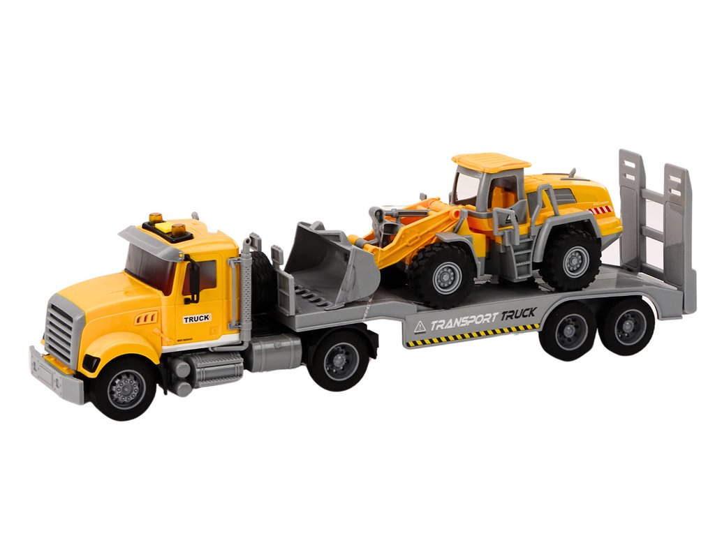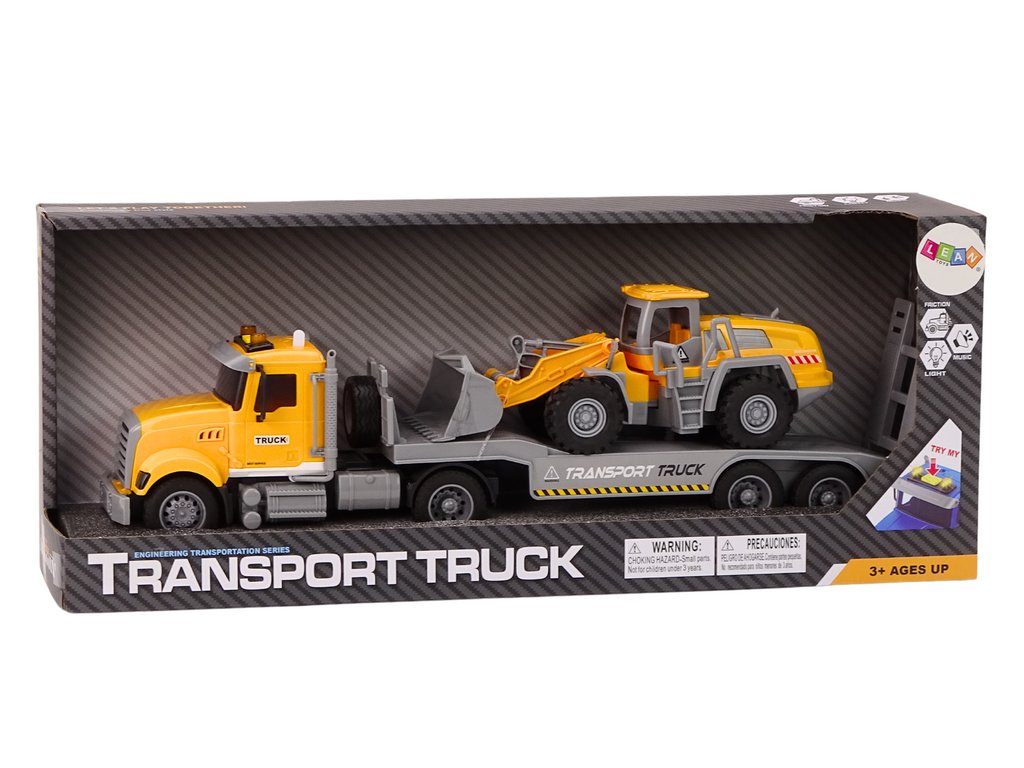 Camionul Lora galben cu excavator este o jucărie care transportă copiii în lumea fascinantă a construcțiilor și a ingineriei. Aspectul realist al vehiculelor face jocul și mai interesant, datorită căruia copiii pot empatiza cu rolul operatorilor de mașini grele.