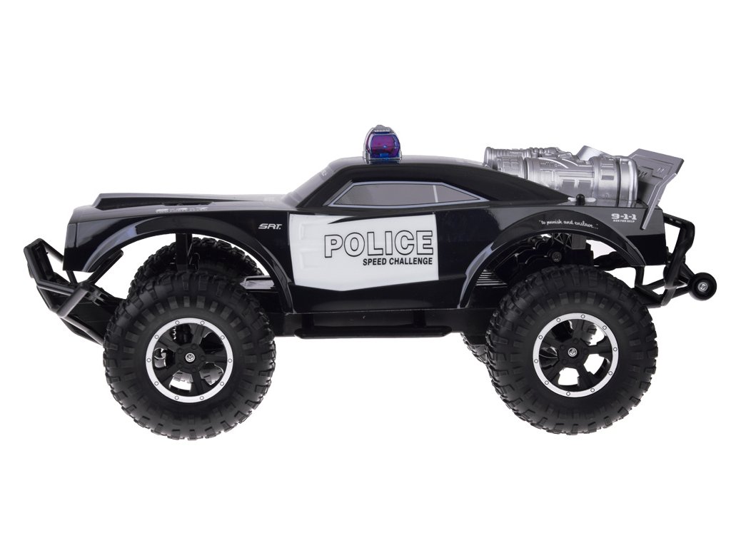 Camionul monstru al poliției, mare, controlat de la distanță, este un adevărat răsfăț pentru orice fan al celor patru roți.