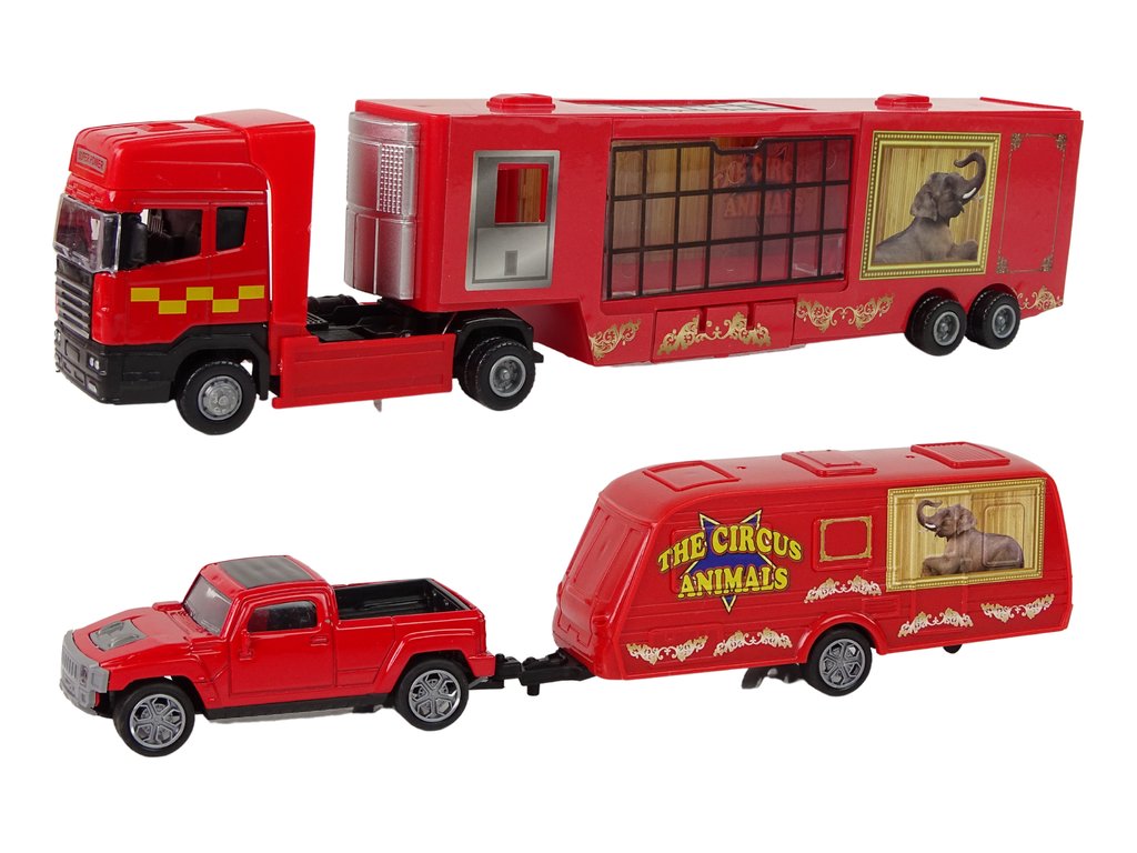 Un camion și o mașină de jucărie cu remorcă este o idee grozavă de cadou. Pachetul include figuri de leu și tigru. Jucăria dezvoltă creativitatea copiilor și îi ține distrați ore întregi.