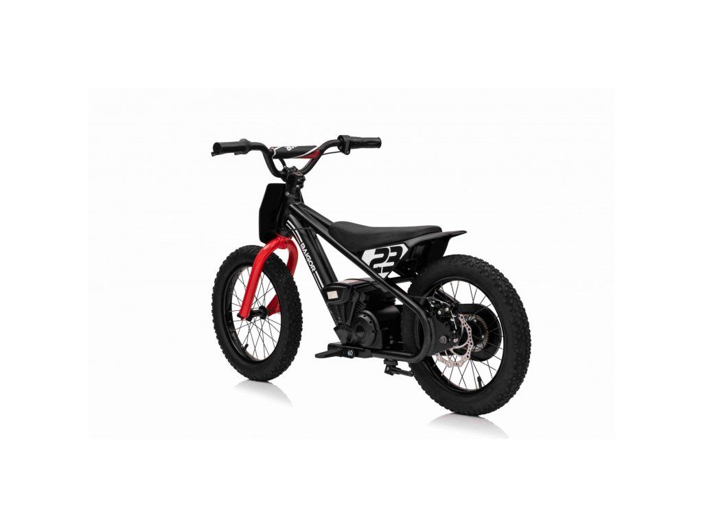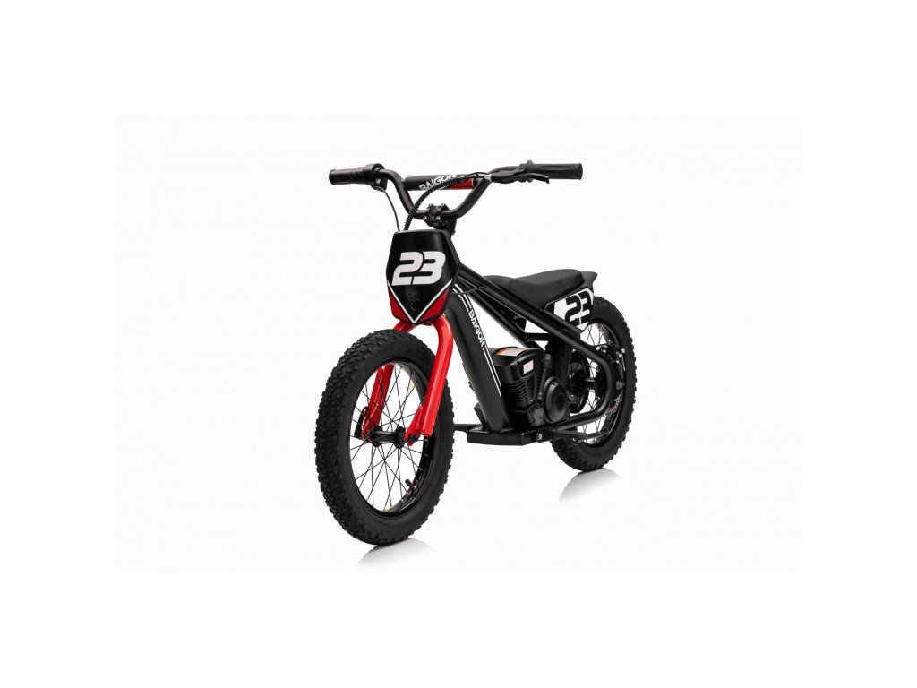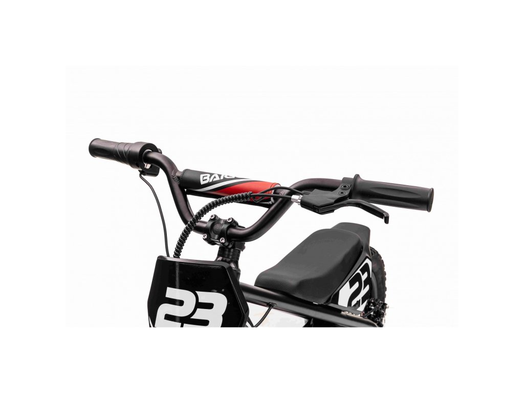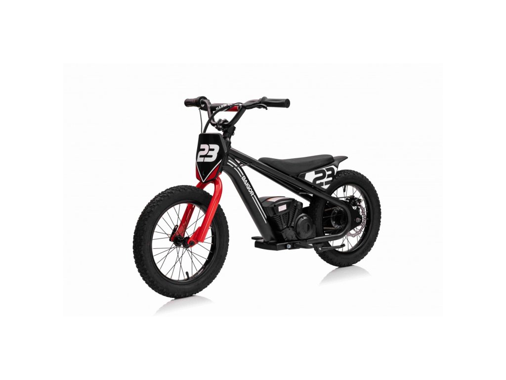 Motocicleta/bicicleta electrică pentru copii BAIGOR 23 PRO vine cu roți gonflabile , care sunt silențioase și nu interferează la conducere. Copilul stă într-un scaun confortabil din piele ecologică , capacitatea sa de încărcare este de 60 kg . BAIGOR 23 PRO are frână pe disc spate, transmisie cu lanț și atinge o viteză de până la 25 km/h . Pachetul include o baterie si un incarcator.