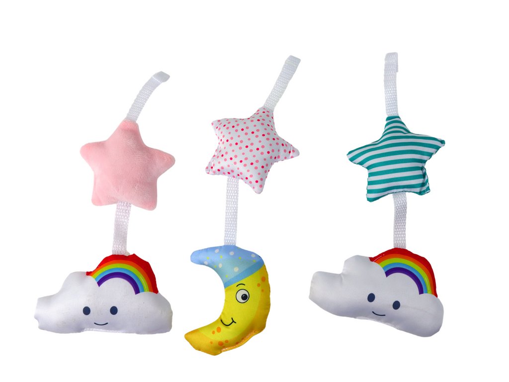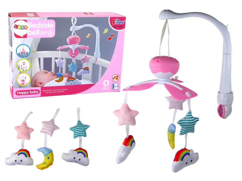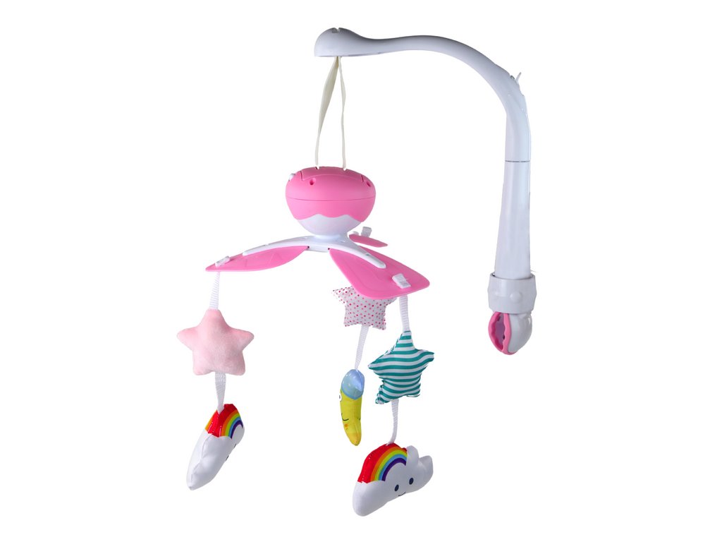 Caruselul fermecător de deasupra pătuțului este potrivit pentru cei mai mici copii, va fi ideal pentru calmarea și adormirea copilului. Caruselul are efecte muzicale cu o melodie plăcută calmă și pandantive de pluș de diverse forme și culori moi și dezactivate. Caruselele susțin dezvoltarea copilului încă din primele zile, stimulând chiar și dezvoltarea coordonării auditive și motorii ale copilului.