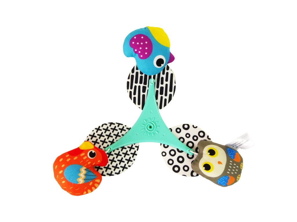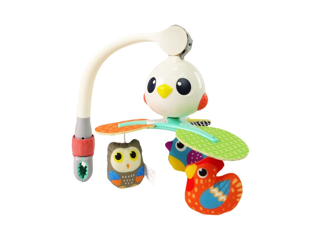 Caruselul care se învârte va oferi primii stimuli auditivi, vizuali și tactili. În plus, îți va adormi bebelușul cu melodii liniștitoare. Jucăria este realizată din plastic, în timp ce pandantivele sunt moale și moi la atingere, complet sigure pentru copilul tău.