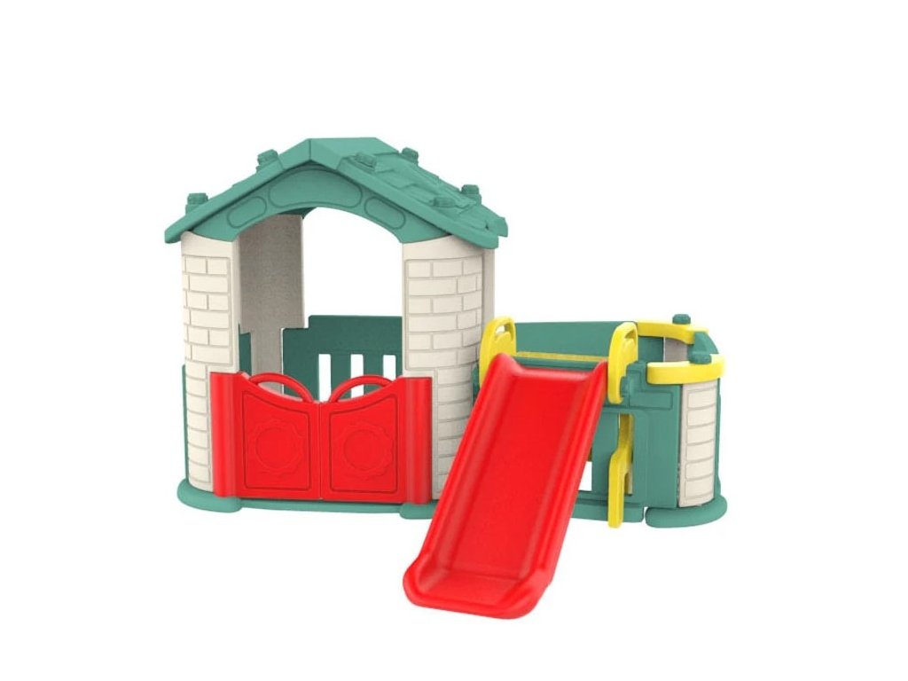 Casă de grădină pentru copii 3 în 1 cu acoperiș verde