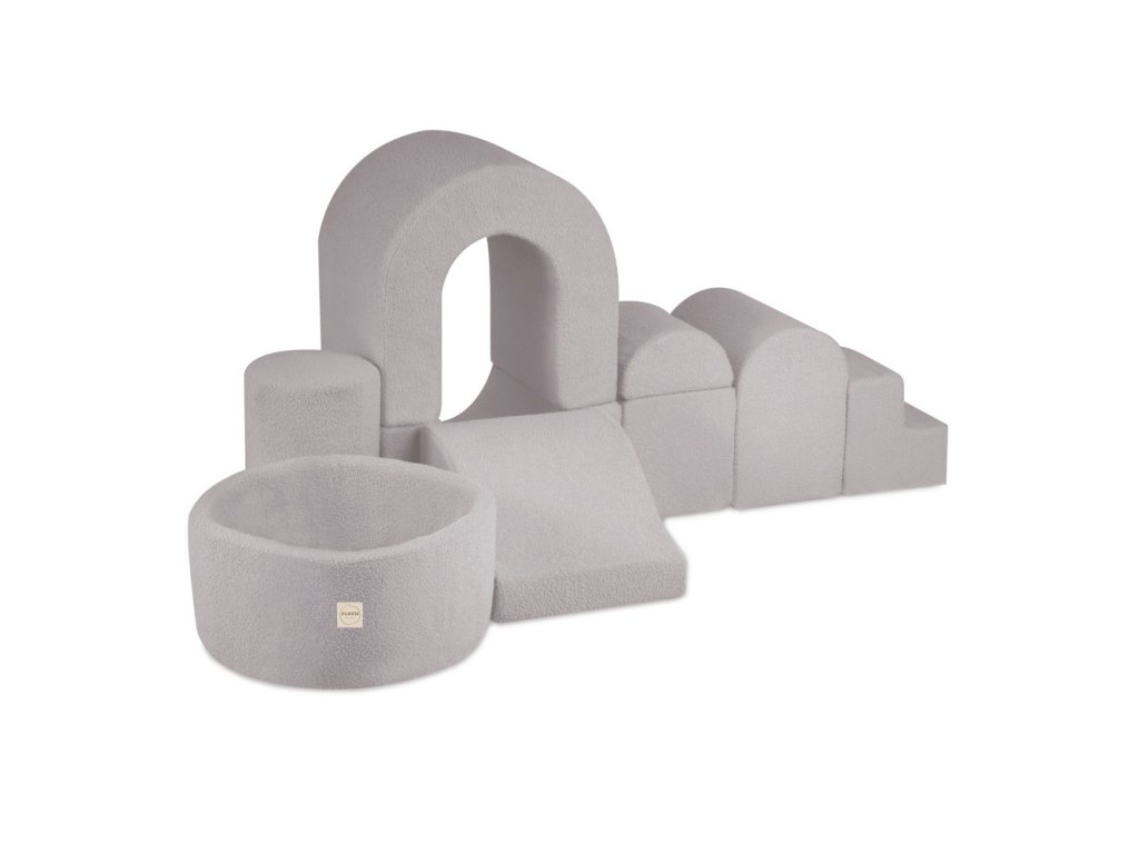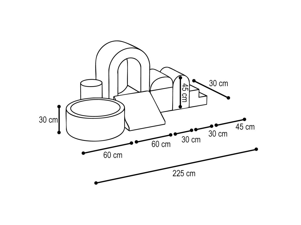 Vă prezentăm un loc de joacă unic loc de joacă, unde fiecare moment de joacă se transformă într-o adevărată călătorie în lumea viselor copilului tău! Acest set este o combinație perfectă de funcționalitate și estetică, realizat din velur de înaltă calitate, care este durabil și, în același timp, excepțional de moale la atingere. Așadar, poți fi sigur că al tău copil se joacă în siguranță și se bucură de confortul fiecărui element.