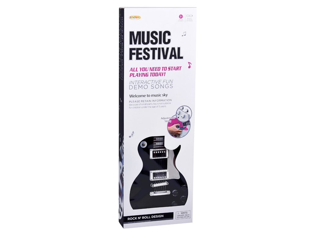 - Două moduri de joc: Corzi active - copilul atinge corzile pentru a auzi sunete melodice, cu opțiunea de a alege sunete diferite. Redarea melodiilor - chitara are melodii pre-inregistrate care pot fi schimbate prin simpla apasare a unui buton.