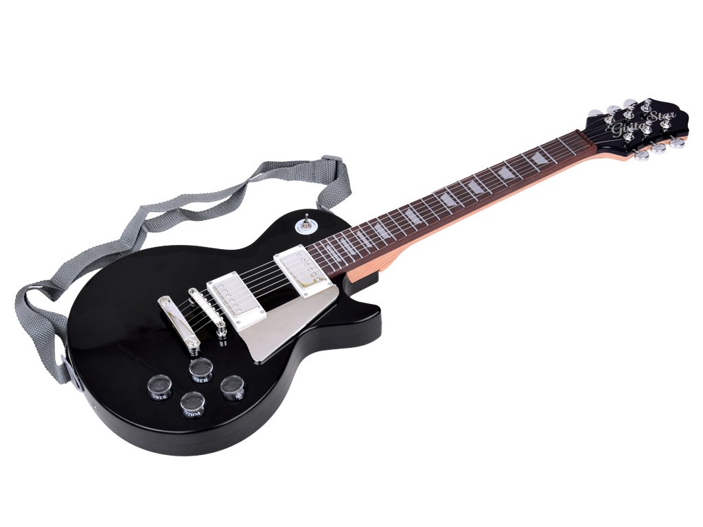 Chitara electrică neagră este alegerea ideală pentru micii muzicieni care doresc să înceapă aventura muzicală de la o vârstă fragedă. Jucăria a fost proiectată să semene cu un instrument real, oferind o experiență de joc realistă.