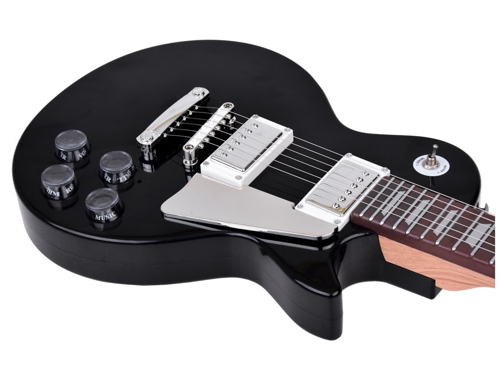 - Alimentare: Chitara este alimentată de 3 baterii AA de 1,5 V (nu sunt incluse).