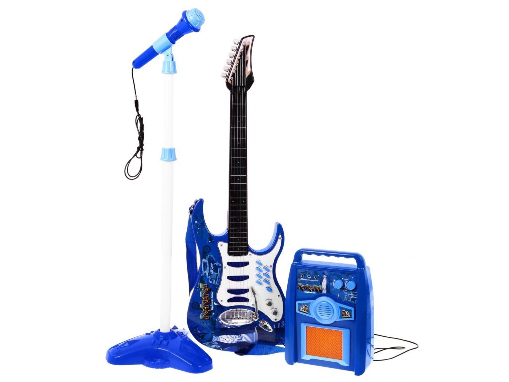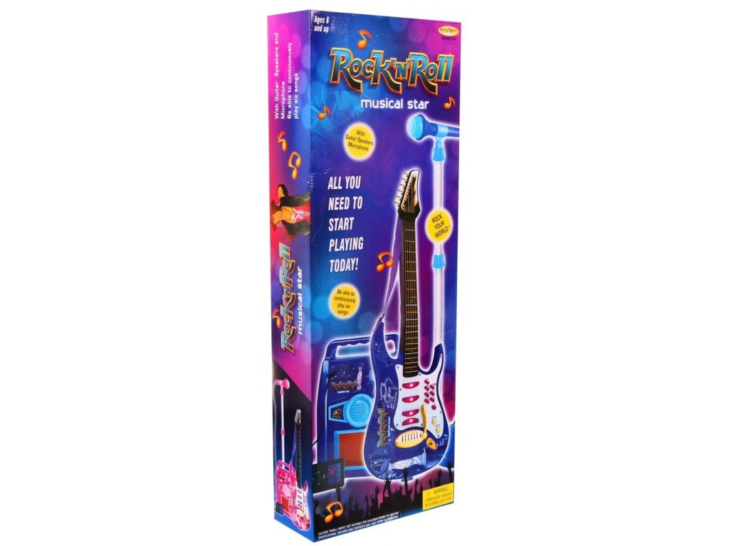 Chitara electrica pentru copii este echipata cu 6 corzi metalice, diferite tonuri, melodii si sample-uri preinregistrate.