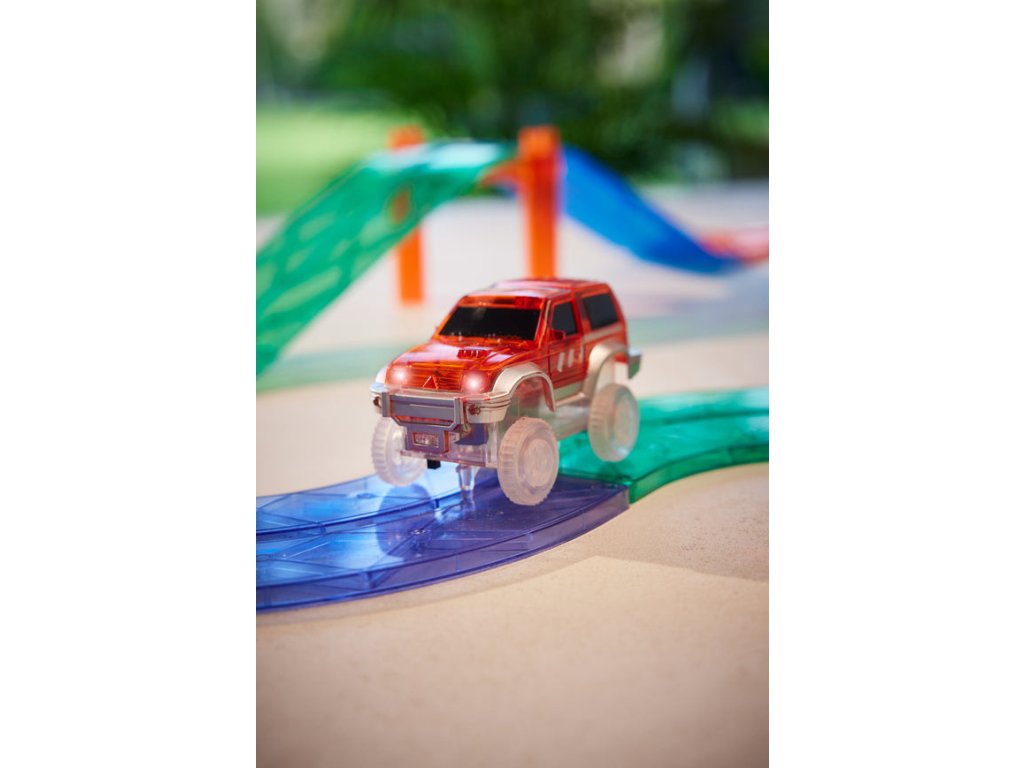 Aveți acasă o pistă de curse Cleverclixx? Adăugați mai multă acțiune cu această mașinuță electrică roșie. Datorită operării simple și compatibilității perfecte cu pistele Cleverclixx, va deveni un accesoriu ideal pentru construcțiile tale. După introducerea unei baterii 1x AA, mașinuța va porni singură, iar farurile sale LED frontale se vor aprinde în timpul conducerii.