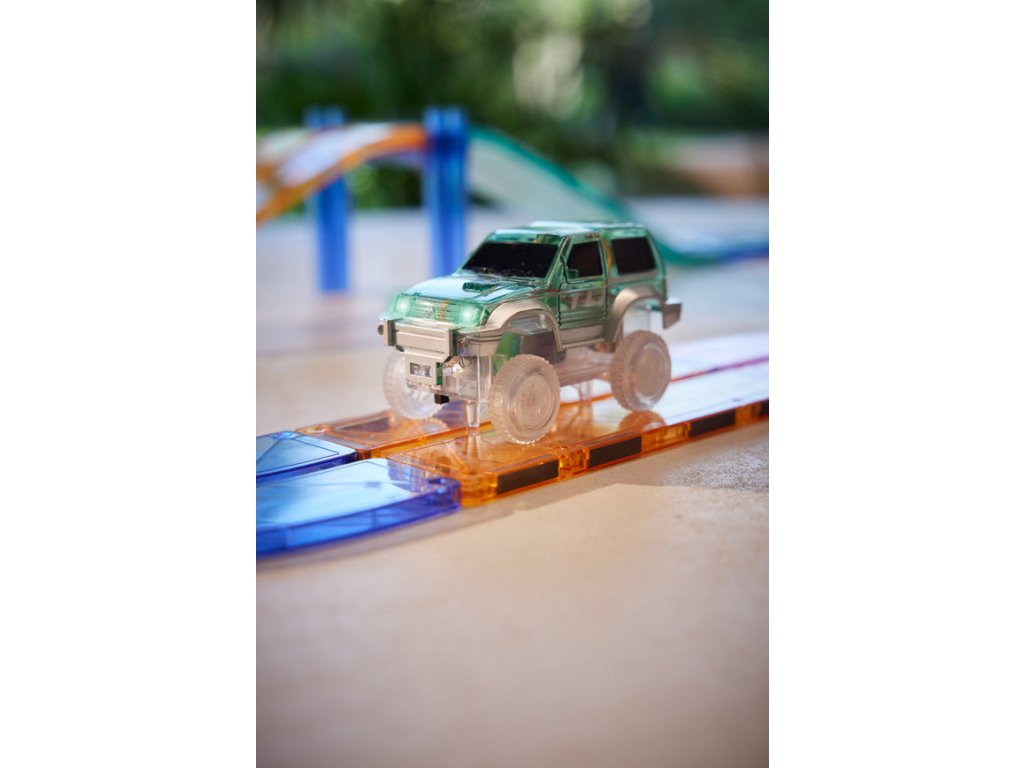 Aveți acasă o pistă de curse Cleverclixx? Adăugați mai multă acțiune cu această mașinuță electrică verde. Datorită operării simple și compatibilității perfecte cu pistele Cleverclixx, va deveni un accesoriu ideal pentru construcțiile tale. După introducerea unei baterii 1x AA, mașinuța va porni singură, iar farurile sale LED frontale se vor aprinde în timpul conducerii.