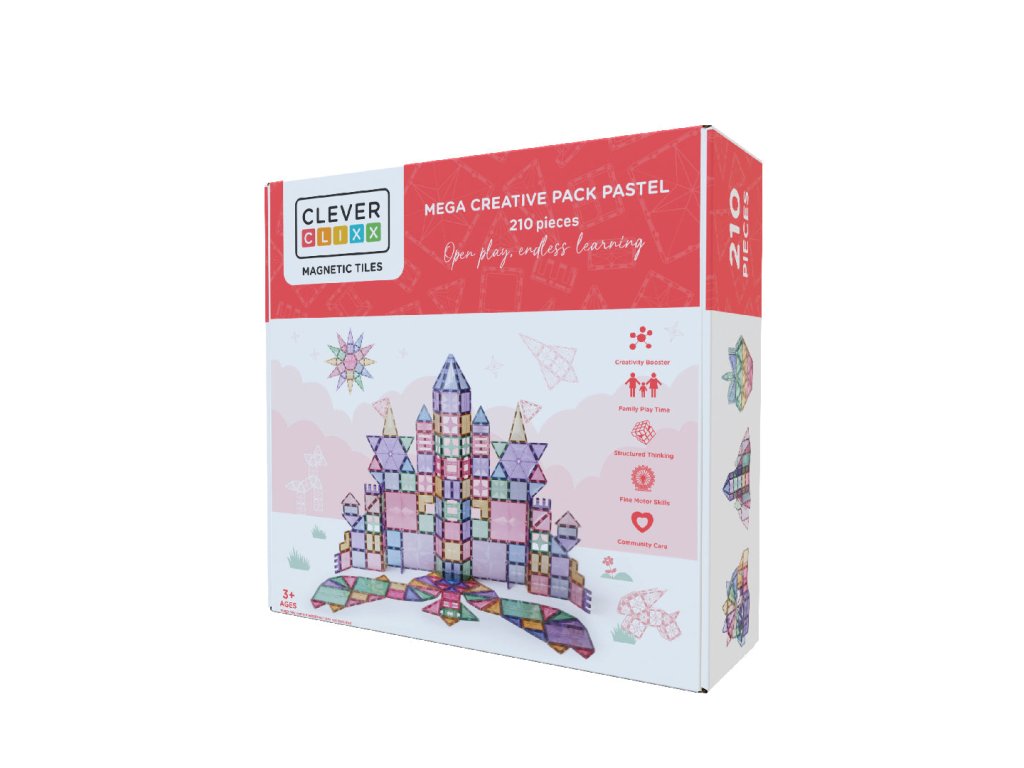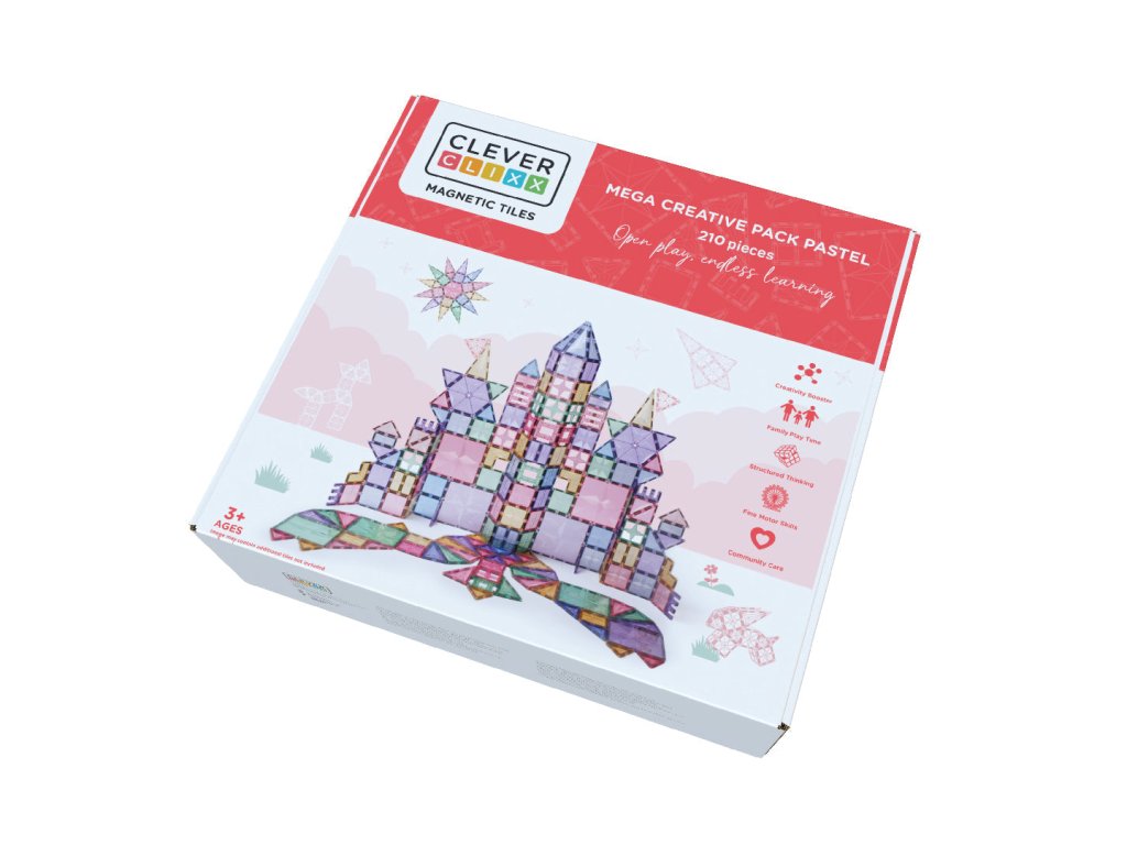 Pătrundeți în lumea creativității cu setul extins Cleverclixx Set creativ mare. Acest set de construcție magnetică cu 210 piese în culori pastelate delicate este alegerea perfectă pentru copiii care doresc să construiască la scară mare – și este ideal pentru jocul în familie sau colectiv. Datorită reprezentării bogate a diferitelor forme, copiii dobândesc experiență practică cu geometria, planificarea spațială și elementele de bază ale construcției.