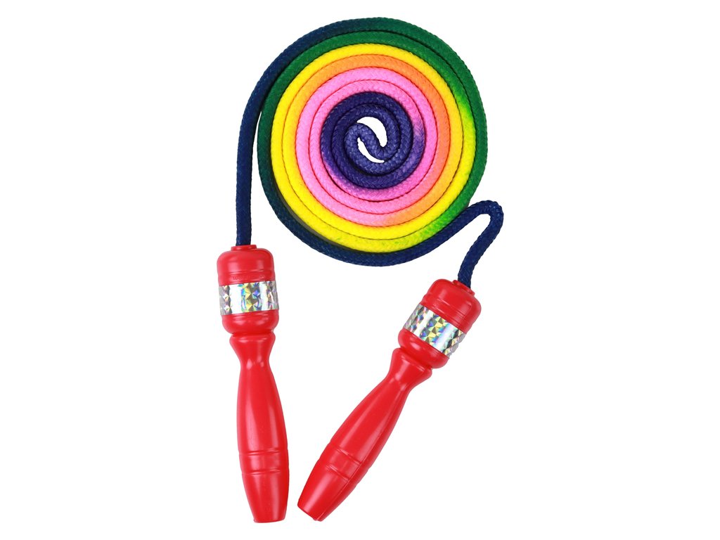 Coarda de sarit curcubeu cu manere rosii pentru copii