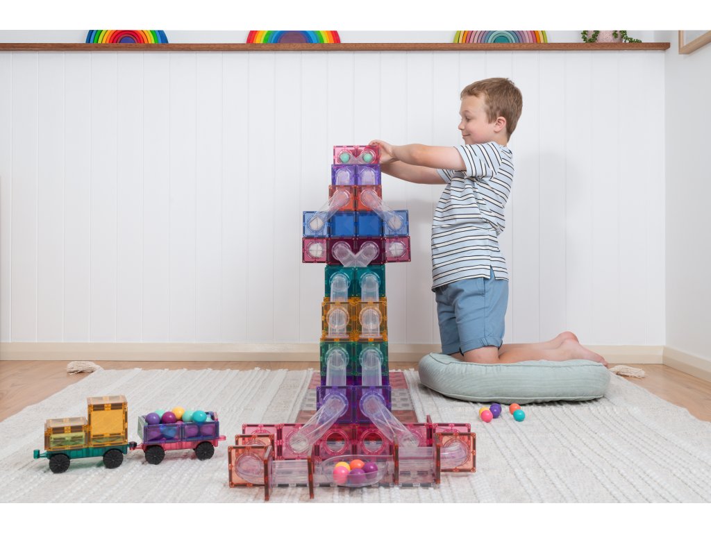 Traseul de bile magnetice pastel Connetix Tiles este setul de start perfect pentru micii constructori și cei care doresc să-și extindă pistele de bile . Construiește, experimentează și lasă copiii să-și dezvolte imaginația!
