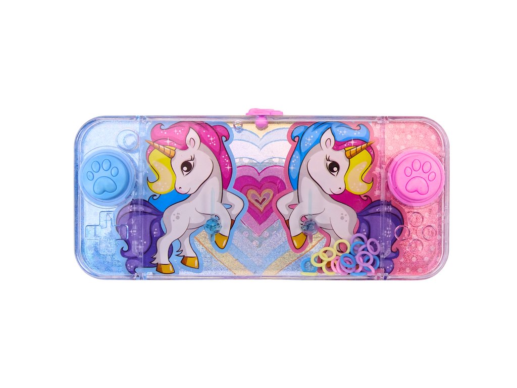 Acest joc clasic de apă de îndemânare cu o temă de unicorn este adesea văzut sub forma unei mici jucării dreptunghiulare. Mecanismul său este simplu, dar foarte antrenant. Jocul are o formă dreptunghiulară, ceea ce îl face confortabil de ținut în mâini. Există două butoane roz și albastre decorate cu labe de animale în partea dreaptă și stângă a dispozitivului. Aceste butoane sunt cruciale pentru joc și sunt ușor accesibile pentru degetele jucătorului.